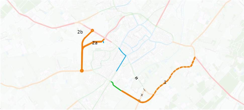 Variant 3a, Volledig zuidelijke variant, ten zuiden van de beek.