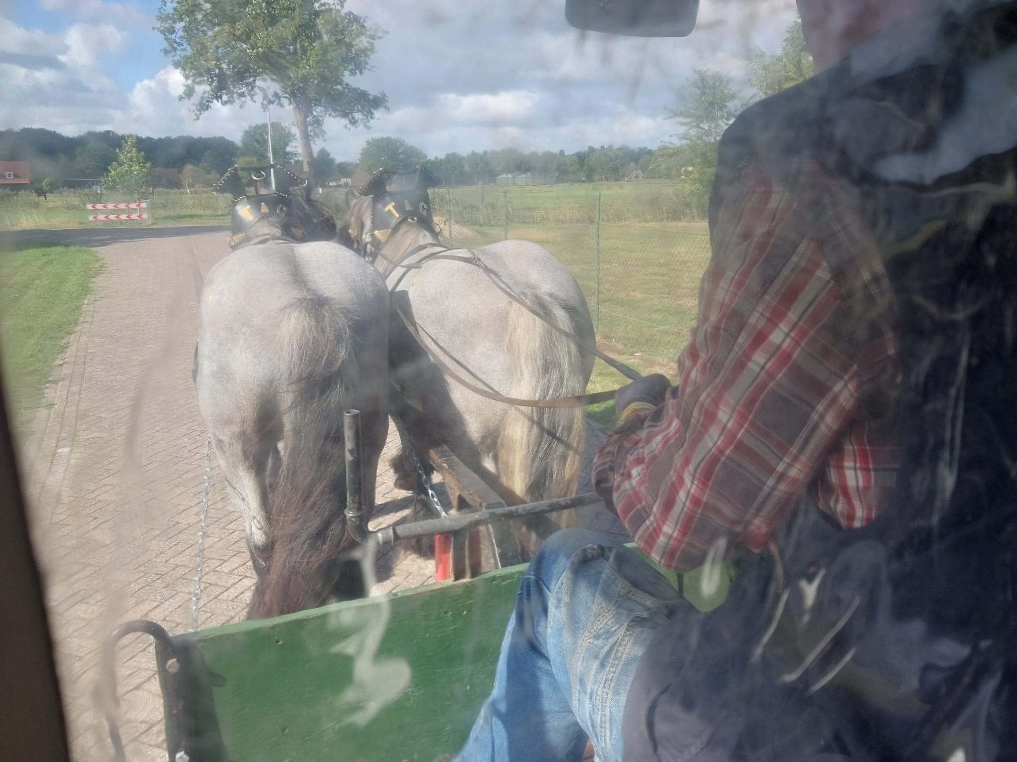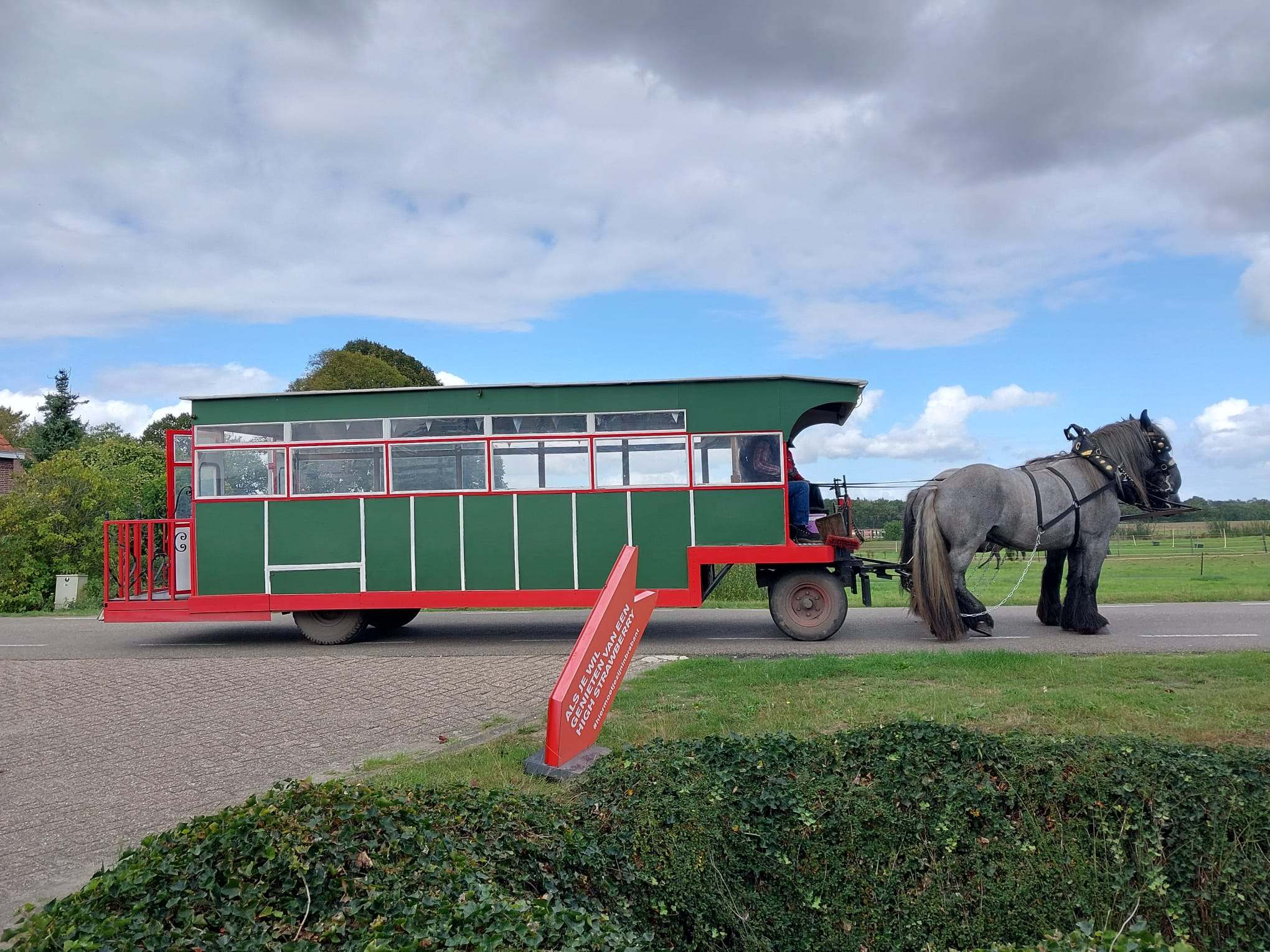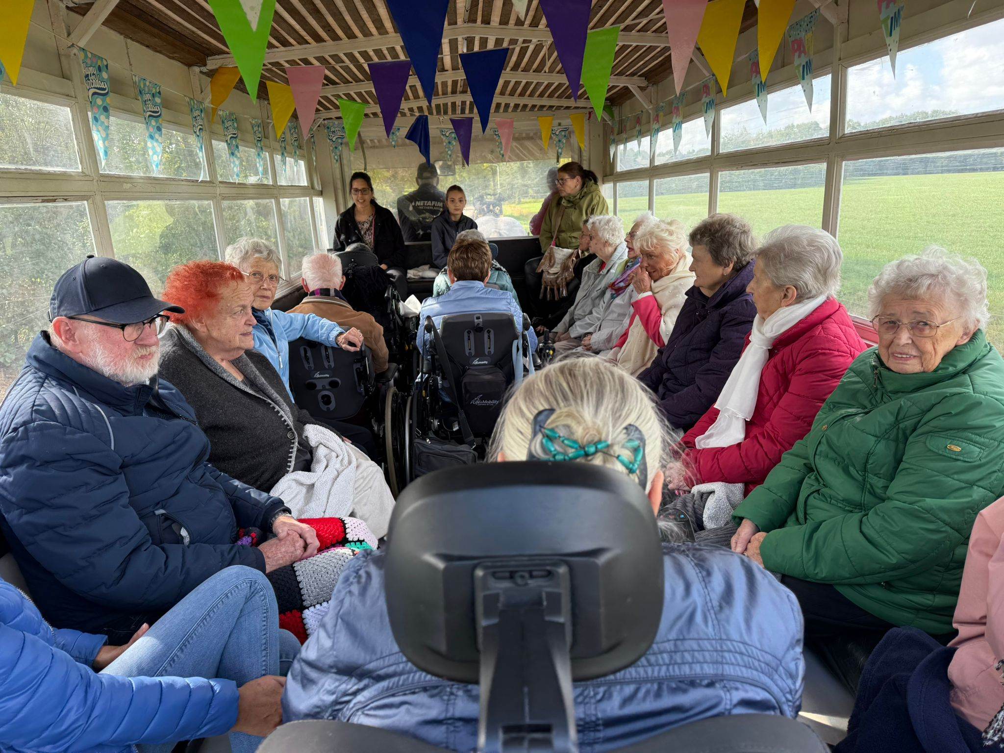 Deelnemers van dagbesteding De Toeloop op stap met de huifkar