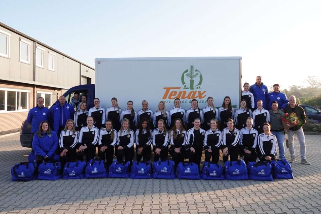 Op zondag 28 september, tijdens een vroege zonnige ochtend, mochten onze dames zich verheugen op prachtige nieuwe voetbaltassen. Dat dit enorm gewaardeerd wordt, is duidelijk te zien aan de stralende gezichten op de foto.