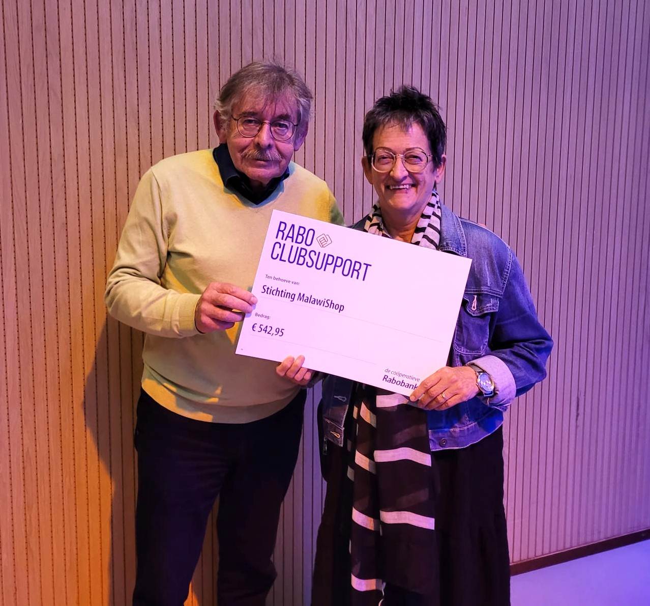 Wij mochten een prachtige cheque van de Rabobank ontvangen ter waarde van €542,95!