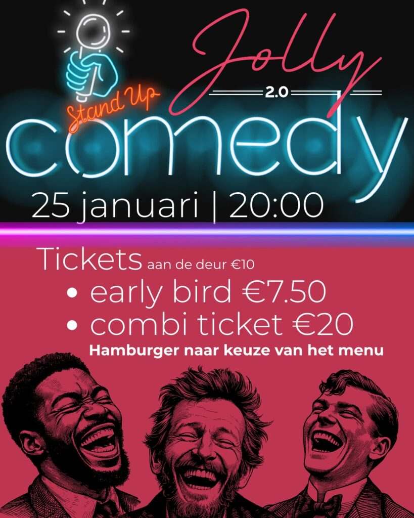 Dit jaar organiseren we 4x een comedy show op zondagavond. Zorg dat je er op tijd bij bent, want dan heb je zeker een goede plek!
