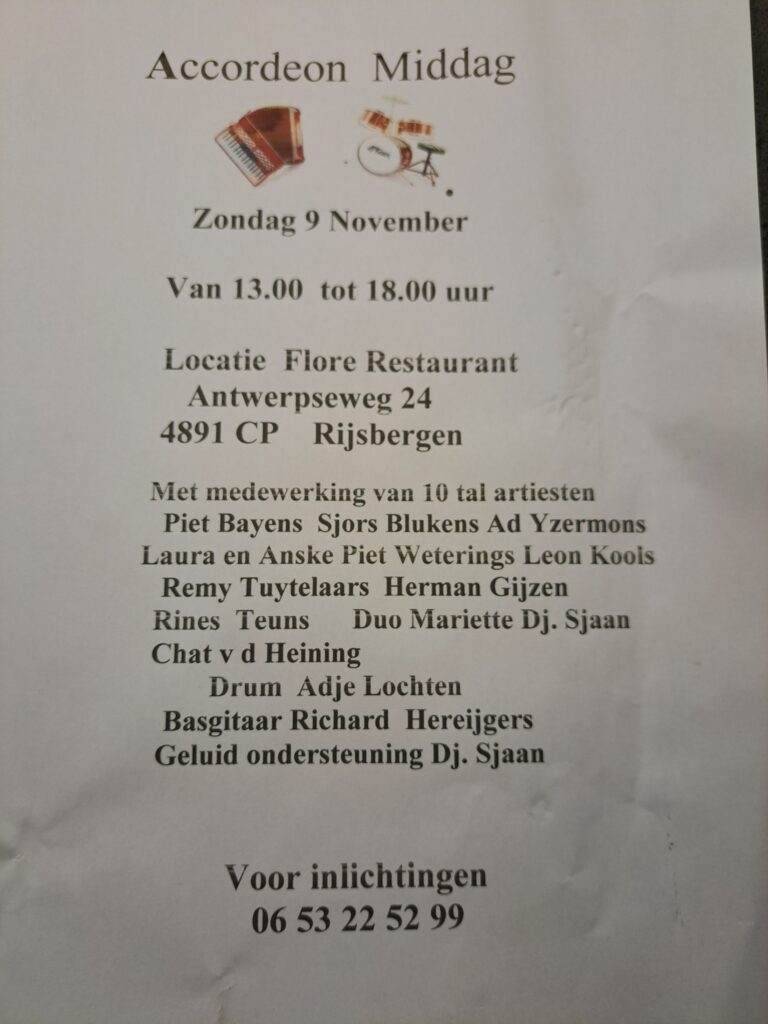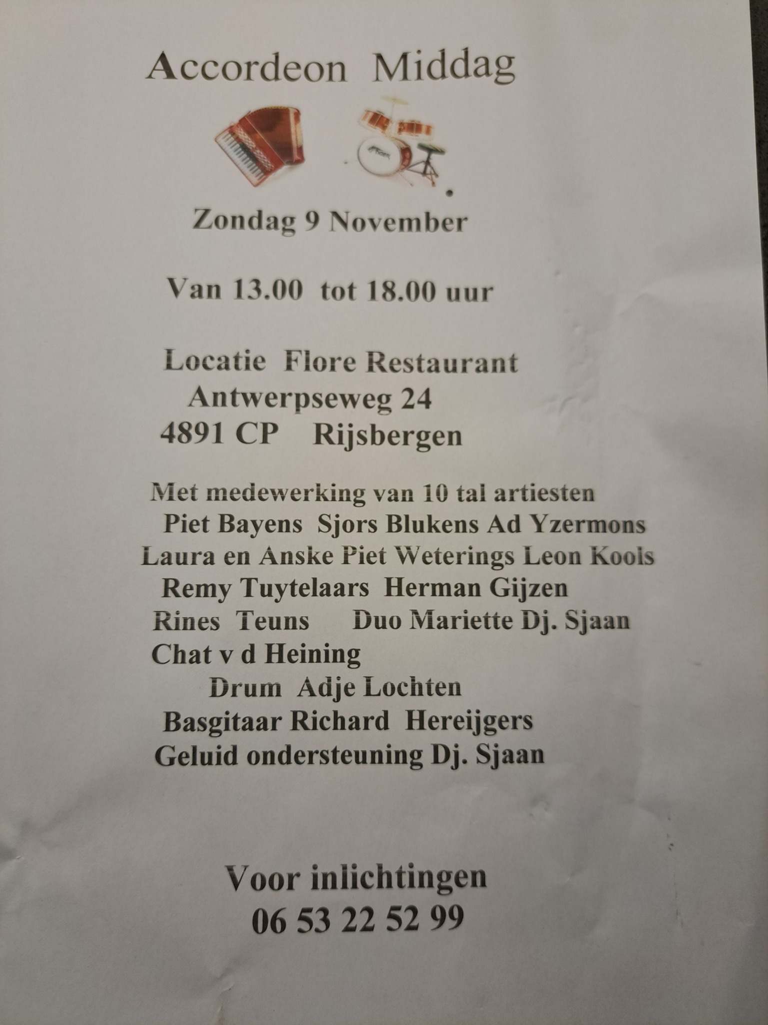 Home Facebook Accordeonmiddag bij Flore FacebookHoreca Accordeonmiddag bij Flore Door Rijsbergen Digitaal - 15 oktober 2025 60 (Bron/foto: Sjaan Bastiaansen) Foto Sjaan Bastiaansen GERELATEERDE ARTIKELENMEER VAN DEZE AUTEUR Halloween bij ut Krisje Stichting Let the Children Play Pompoen uithollen bij Kinderboerderij de leijhoeve