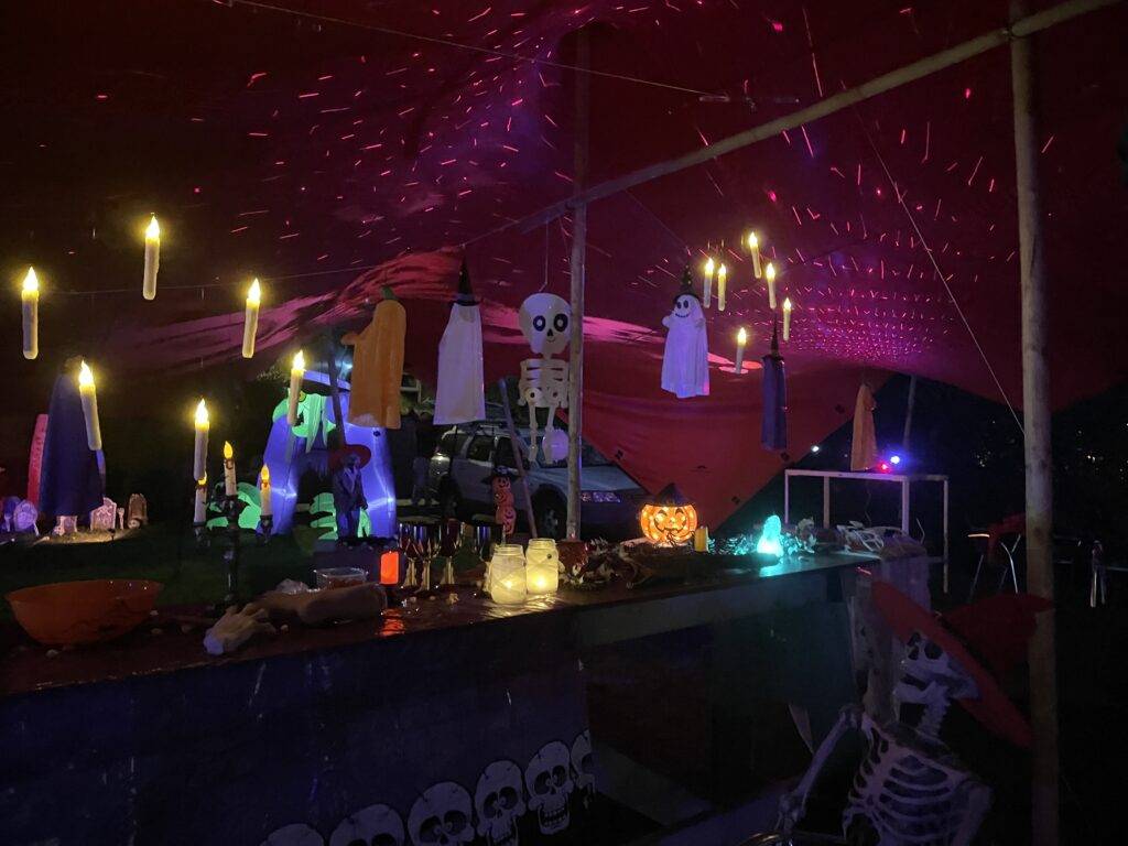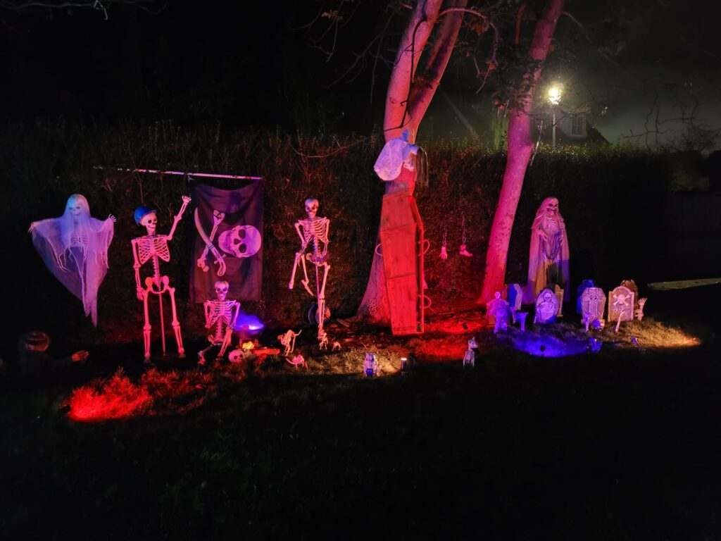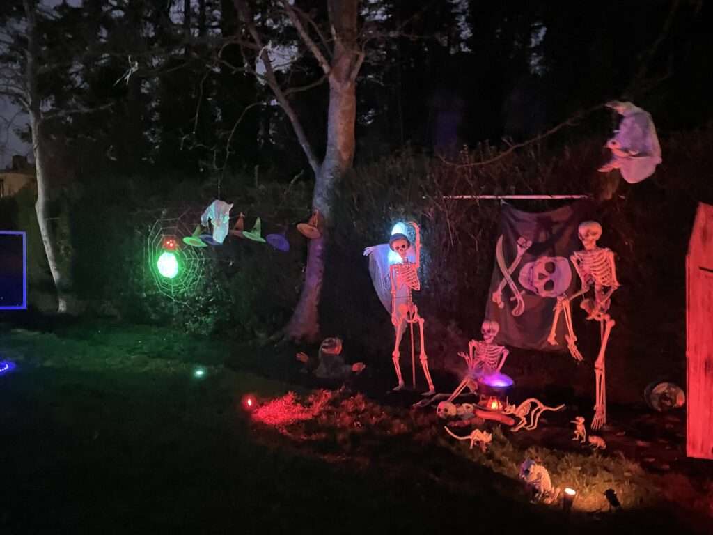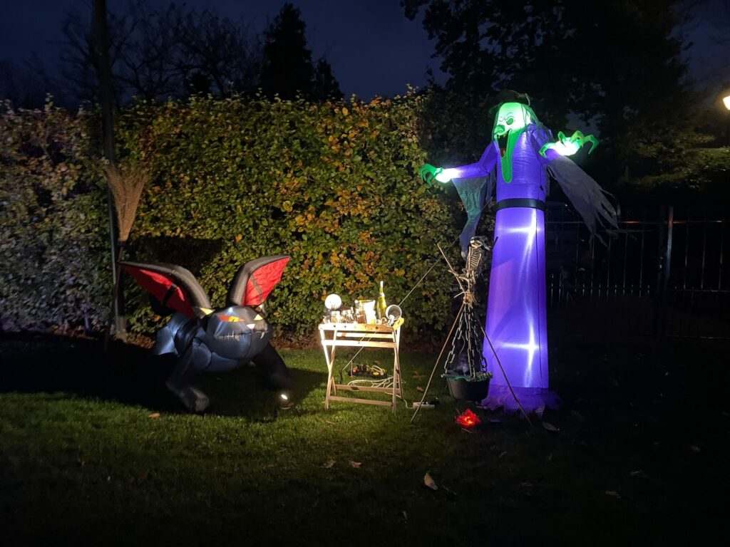 De lichtjesbrigade van de Rijsbergse Vliegerdagen heeft heel de tuin van Kristel omgetoverd tot een grote griezeltuin. Het is er donker en er klinkt enge muziek, maar het is er ook gezellig, Dus kom langs !!!