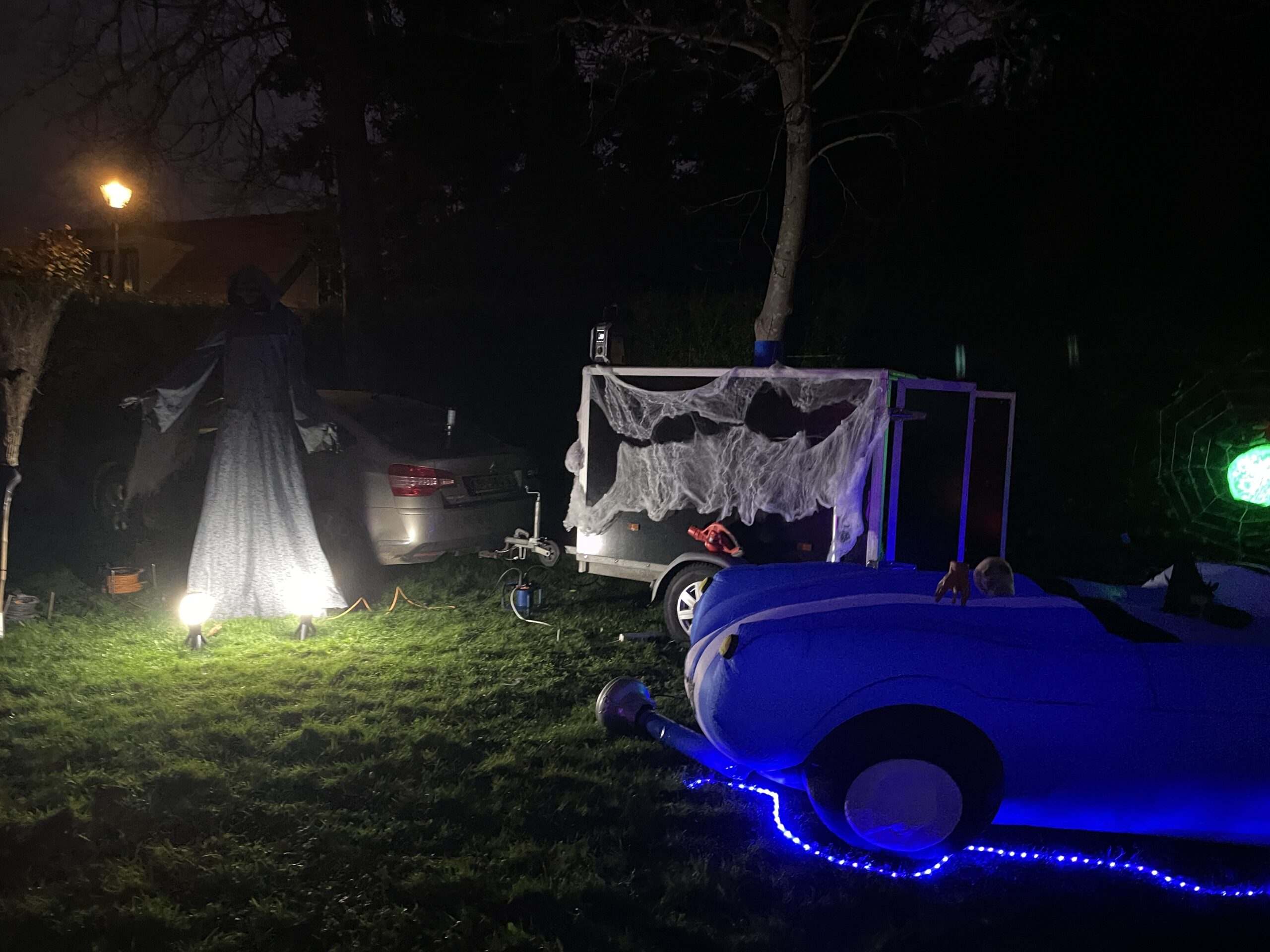De lichtjesbrigade van de Rijsbergse Vliegerdagen heeft heel de tuin van Kristel omgetoverd tot een grote griezeltuin. Het is er donker en er klinkt enge muziek, maar het is er ook gezellig, Dus kom langs !!!