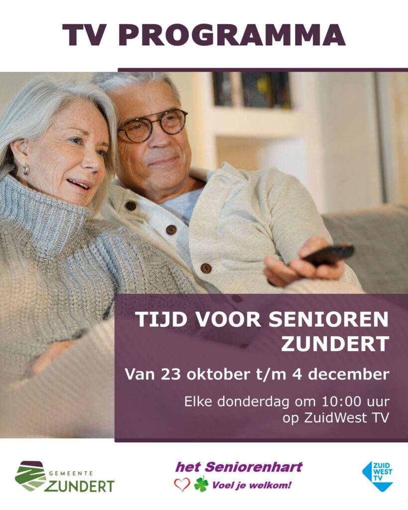 Vanaf 23 oktober kunnen senioren uit de gemeente Zundert en omgeving elke week genieten van een nieuw televisieprogramma: Tijd voor Senioren Zundert. De reeks is speciaal ontwikkeld voor en door senioren, met aandacht voor onderwerpen die dichtbij staan en inspireren.