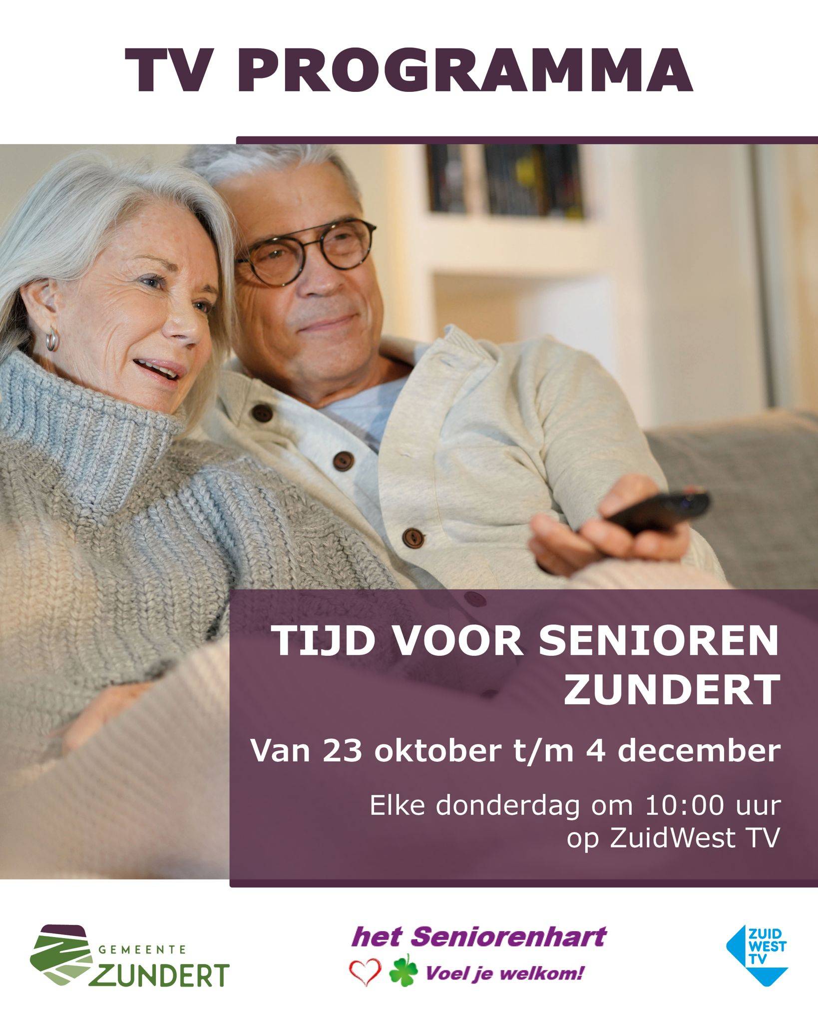 Vanaf 23 oktober kunnen senioren uit de gemeente Zundert en omgeving elke week genieten van een nieuw televisieprogramma: Tijd voor Senioren Zundert. De reeks is speciaal ontwikkeld voor en door senioren, met aandacht voor onderwerpen die dichtbij staan en inspireren.