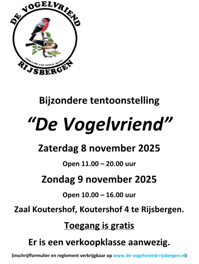Bijzondere tentoonstelling de Vogelvriend in de Koutershof Rijsbergen.
