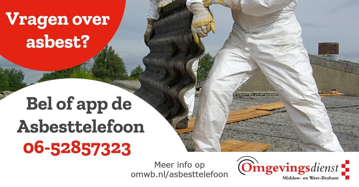 Jij kan met al jouw vragen over asbest terecht bij de Asbesttelefoon van de Omgevingsdienst Midden- en West-Brabant (OMWB). Van informatie over jouw sloopmelding, tot instructies voor het verwijderen van asbest.