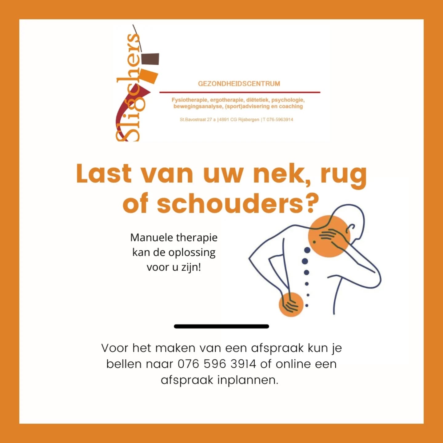Heeft u last van nek- of rugklachten, een stijve schouder of pijn bij bewegen?
