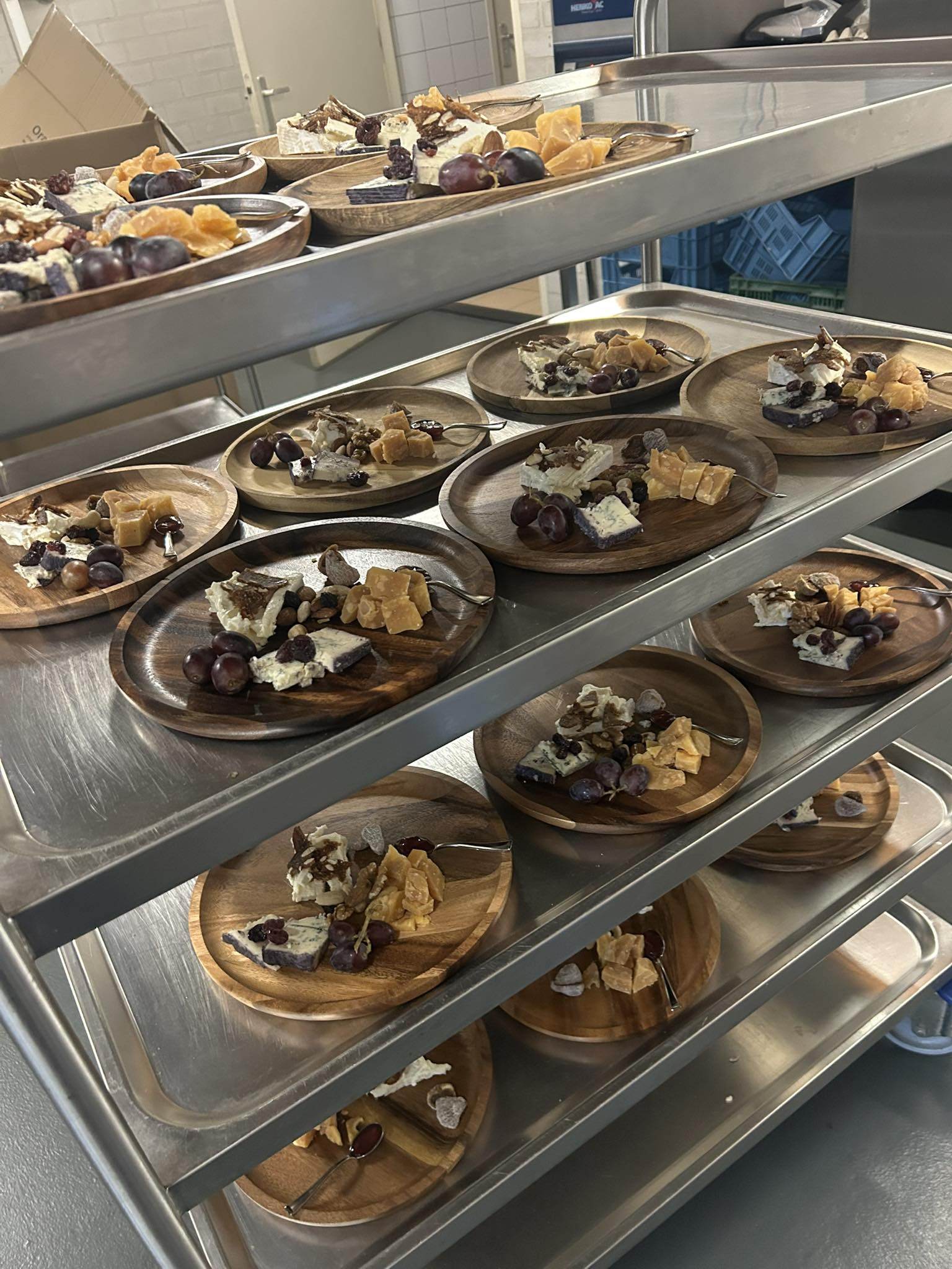 De plankjes aan de tafels gebracht met de uitleg en natuurlijk een praatje over ons zelf en de winkel.