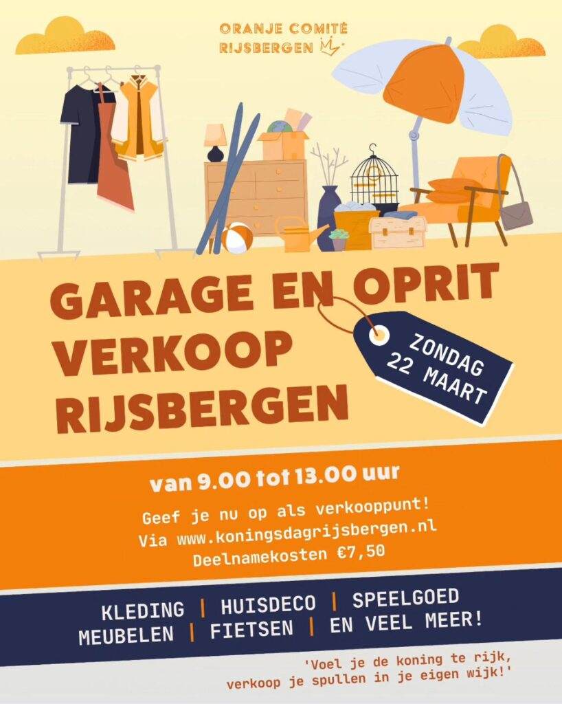 Op zondag 22 maart 2026 organiseert het Oranjecomité Rijsbergen de 5e editie van de Garage-/Opritverkoop!