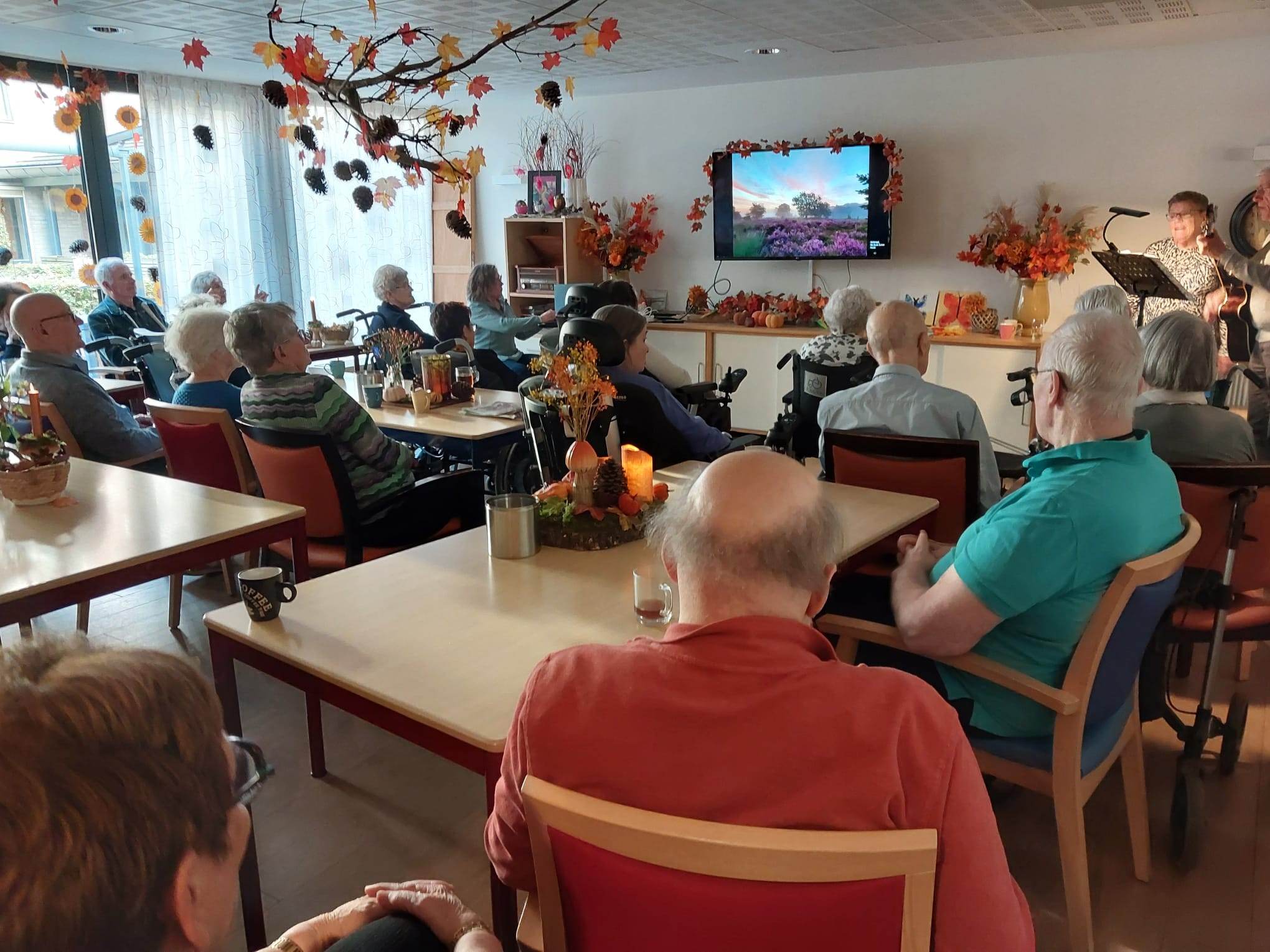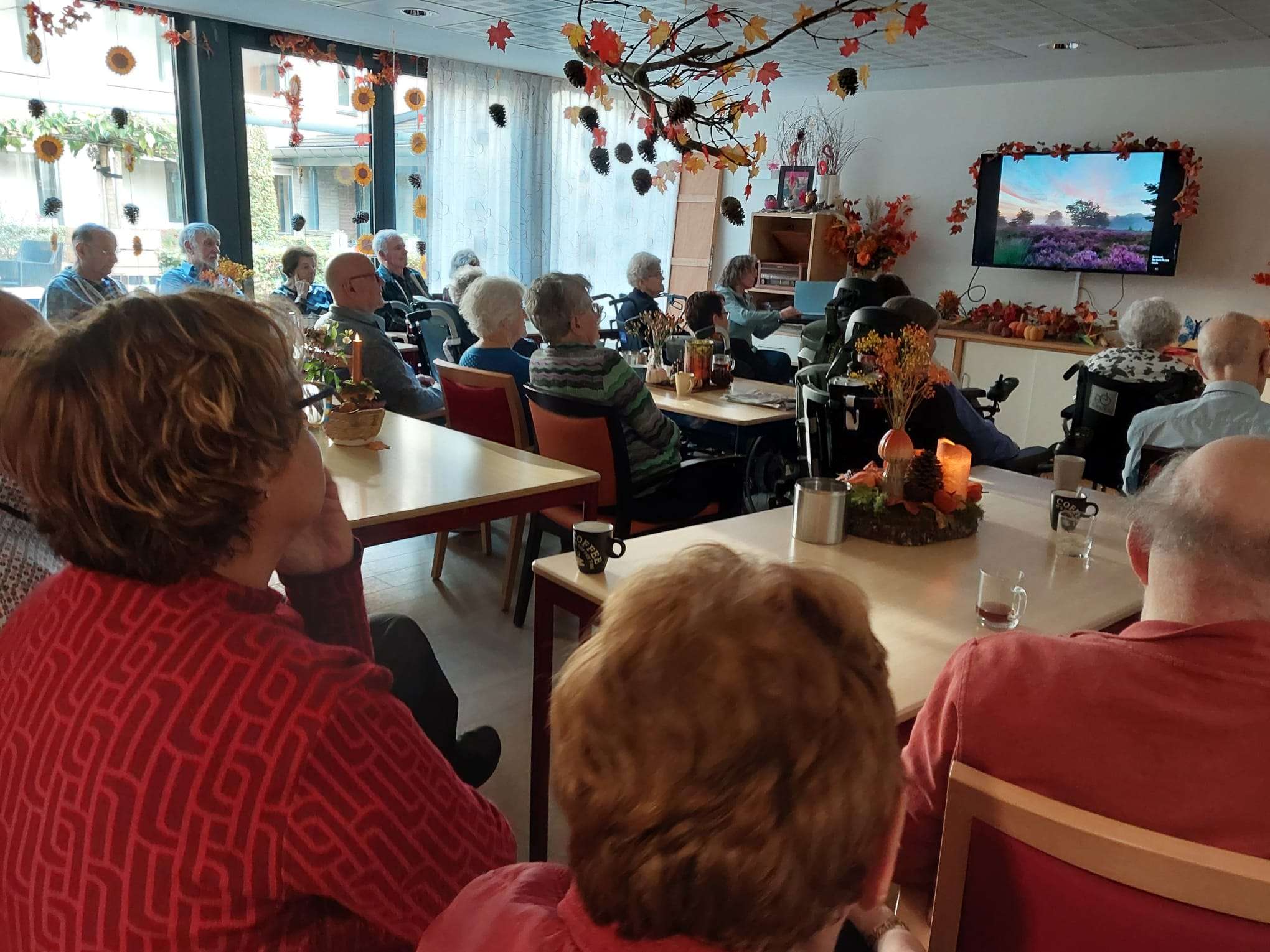 Marlies van Geel bracht samen met enkele muzikanten een sfeervol bezoek aan Rijserf. Tijdens deze ochtend genoten de bewoners van prachtige natuurfoto’s van wandelingen door de natuurgebieden Pannehoef, Lange Maten en Strijbeek.