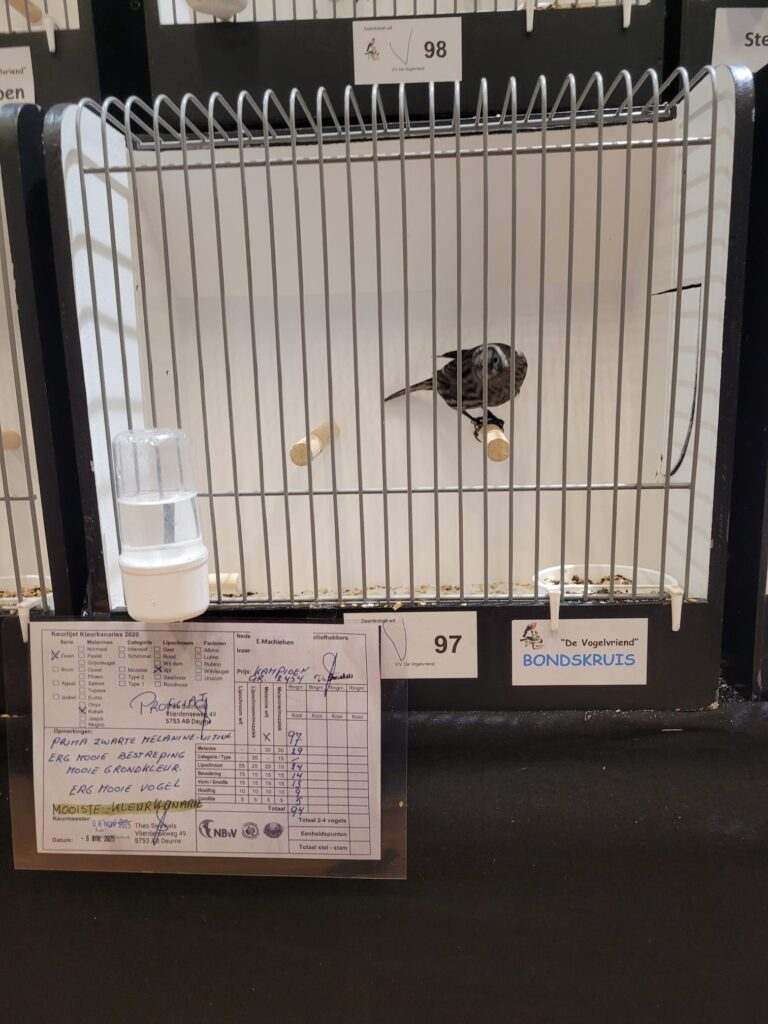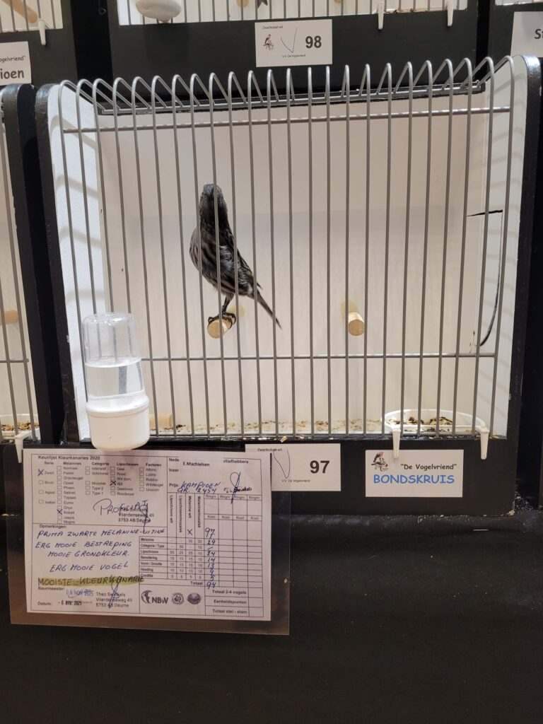 Alles natuurlijk op zijn mooist gebracht en er waren dan ook weer heel wat kampioenen. De grootste onderscheiding het Bondskruis was deze keer voor een kanarie met prachtige grijze tint.