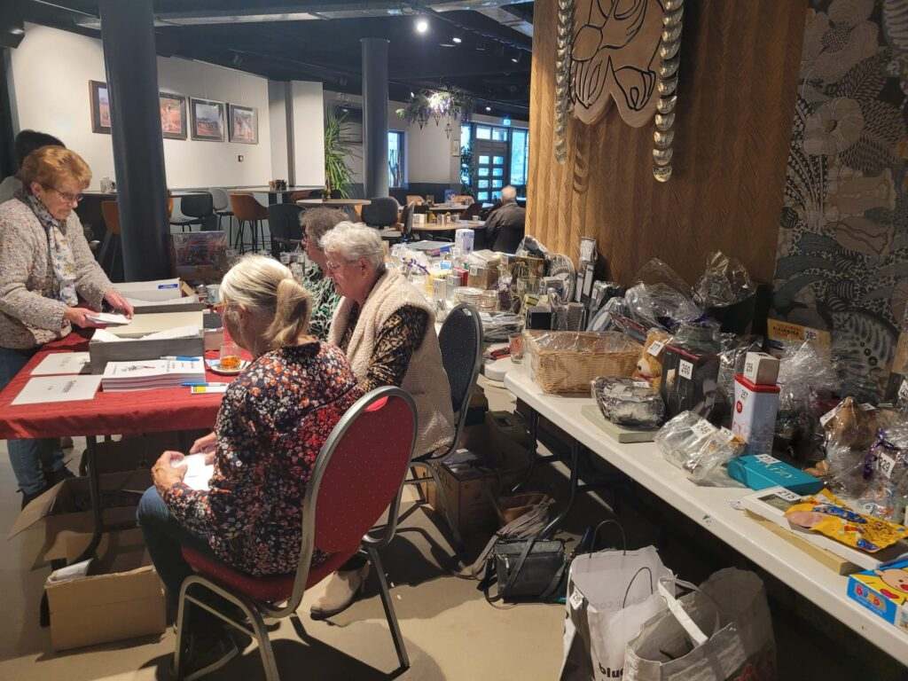 De dames achter de vogelkwekers hielden zich bezig met de verkoop van vogeltaarten, hapjesplanken en natuurlijk de enveloppenaktie.