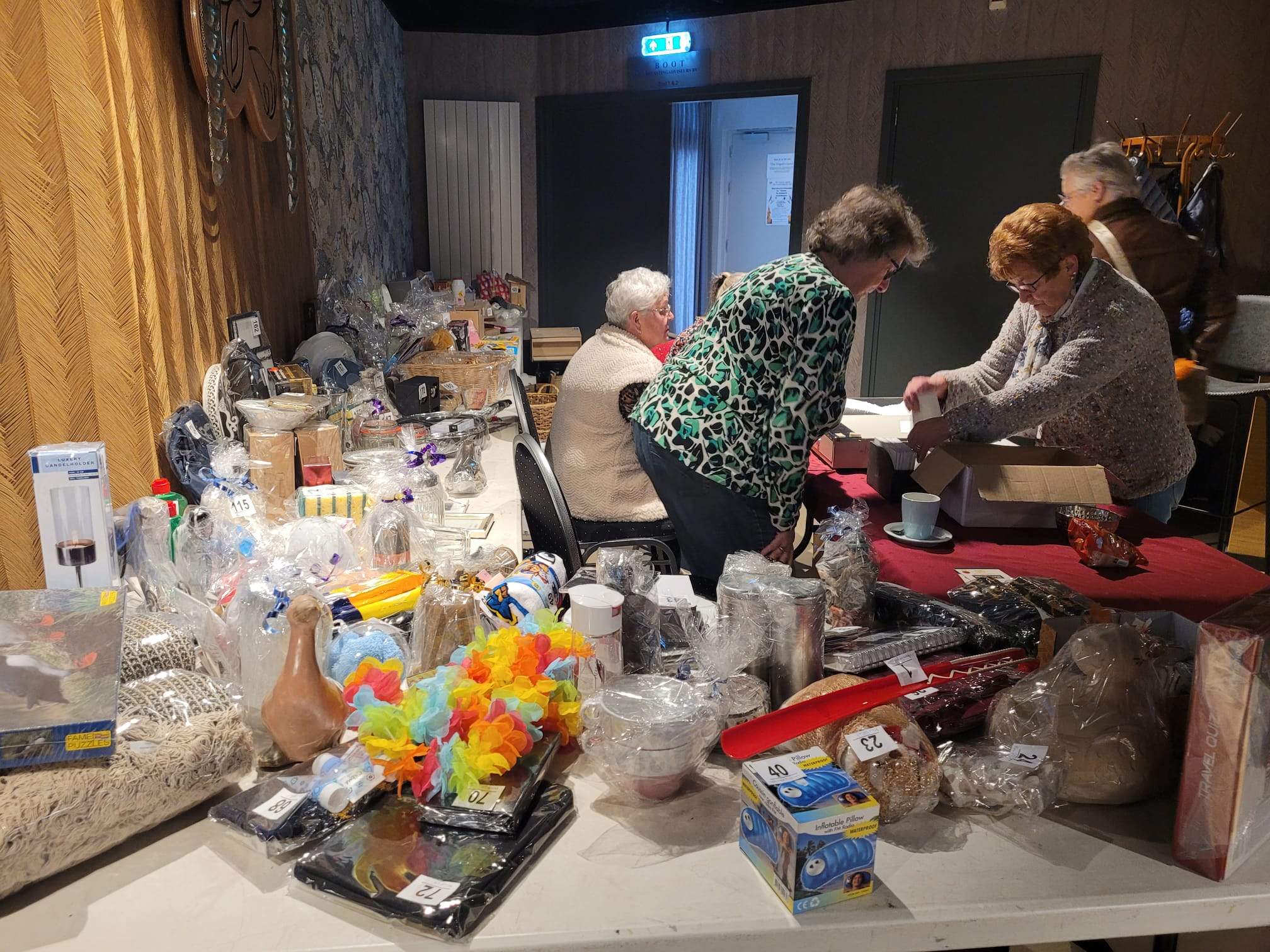 De dames achter de vogelkwekers hielden zich bezig met de verkoop van vogeltaarten, hapjesplanken en natuurlijk de enveloppenaktie.