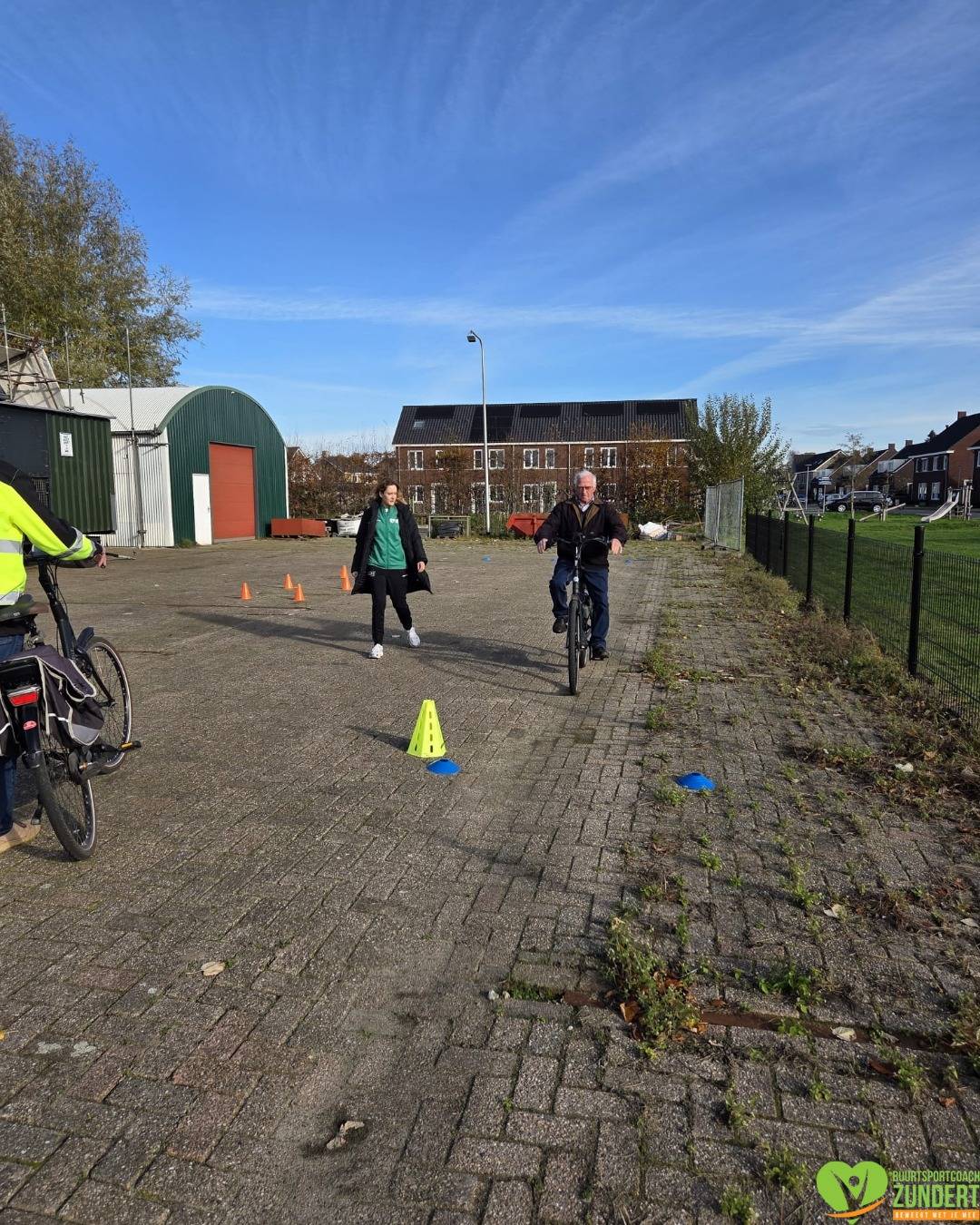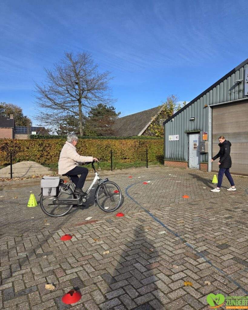 Daarna gingen ze in de praktijk aan de slag met oefeningen voor kracht, balans, reactievermogen en flexibiliteit. Eerst werd er geoefend in de gymzaal, waarna de deelnemers ook op de fiets hun vaardigheden konden testen.