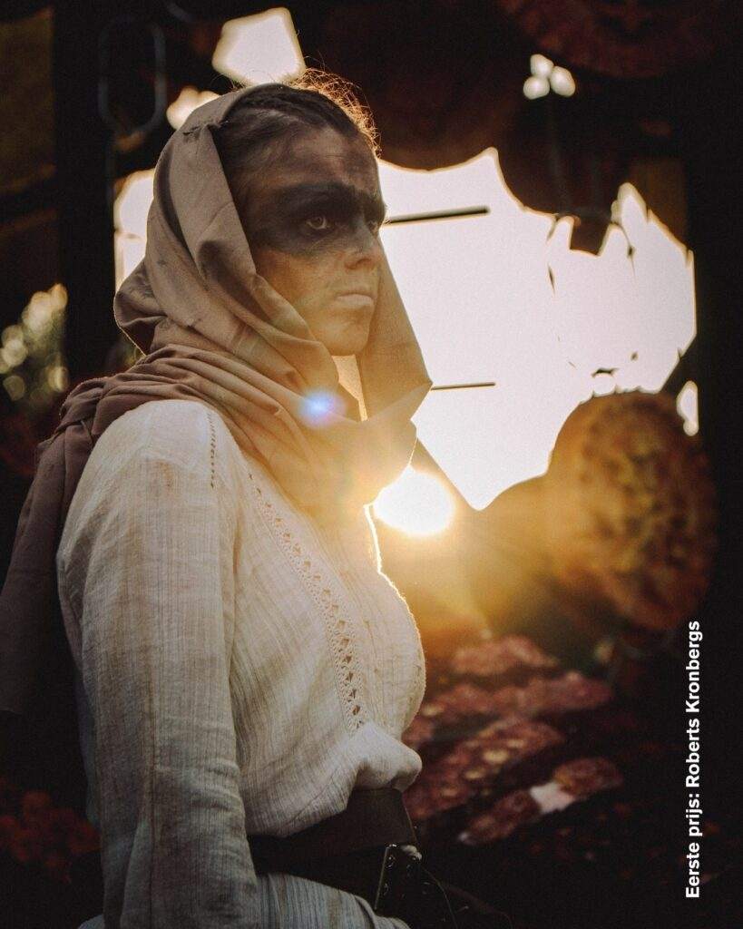 De winnaar is Roberts Kronbergs. Zijn foto raakt je. Het licht zorgt voor een prachtig verhalend beeld. De scherpte en onscherpte houdt deze foto constant interessant. De figurant zit helemaal in haar rol.