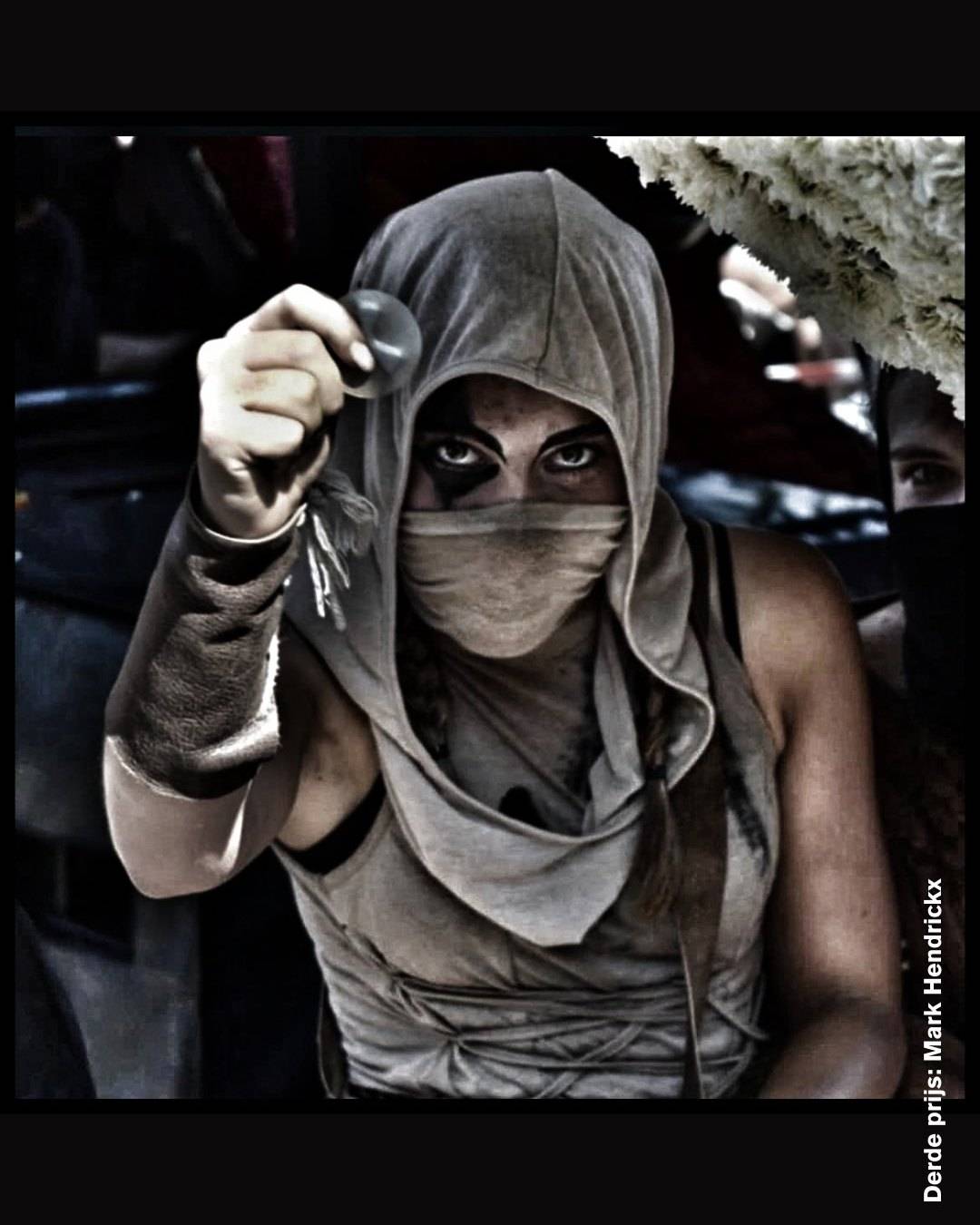 De foto die de derde prijs ontvangt is van Mark Hendrickx. De fotograaf heeft erg mooi het contact gezocht met de figurant. Deze foto pakt je. Het licht van onder maakt de foto duister. Een vierkante uitsnijding werkt bij deze foto erg goed.
