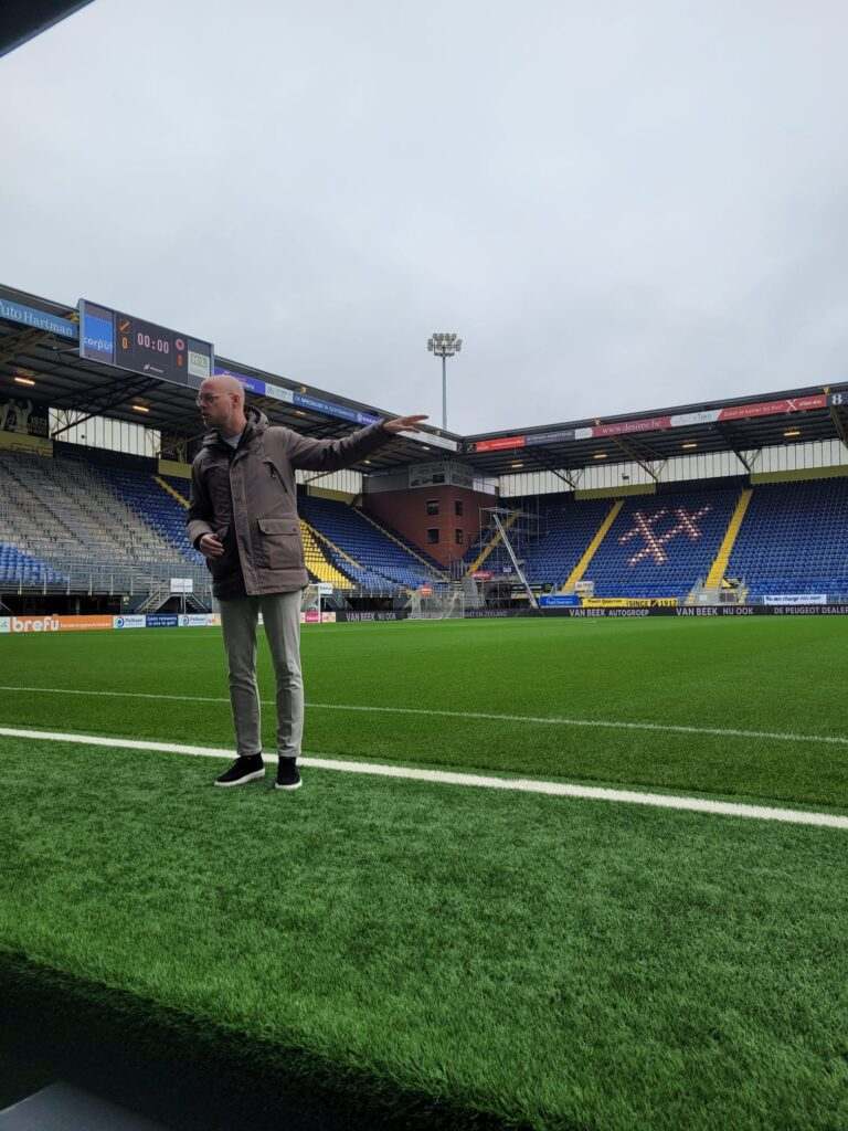 De sponsorboxen met eigen bar, de omroepruimte. Vanuit de catacomben zo het veld op en even voelen hoe het is om in de dug-out te zitten .