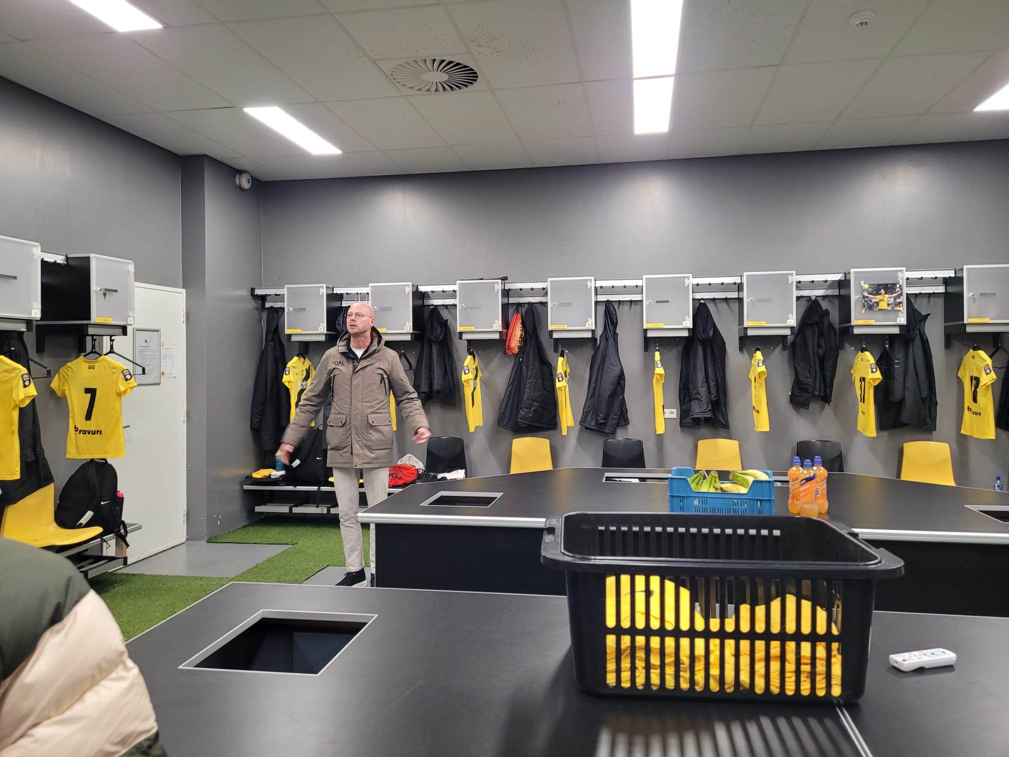 De sponsorboxen met eigen bar, de omroepruimte. Vanuit de catacomben zo het veld op en even voelen hoe het is om in de dug-out te zitten .