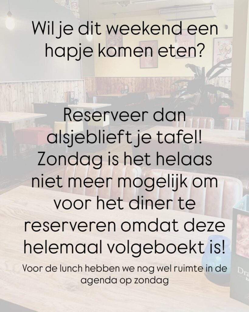 Reserveer je tafel telefonisch, via whatsapp of via de mail!