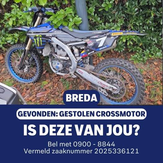 De politie heeft een crossmotor gevonden die waarschijnlijk afkomstig is van diefstal. Het is een Yamaha crossmotor, mét een naamsticker: ‘WILLEM H’.