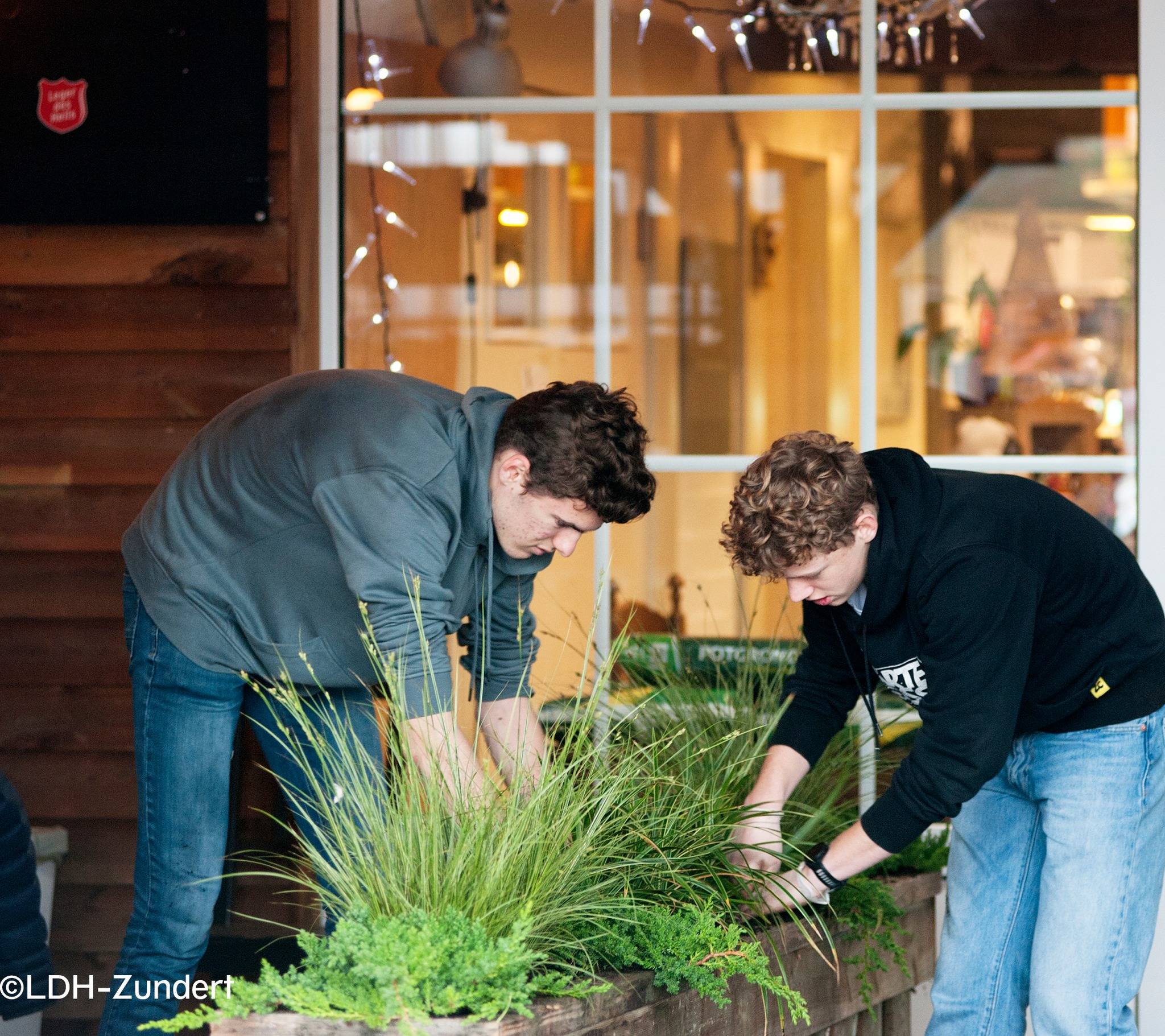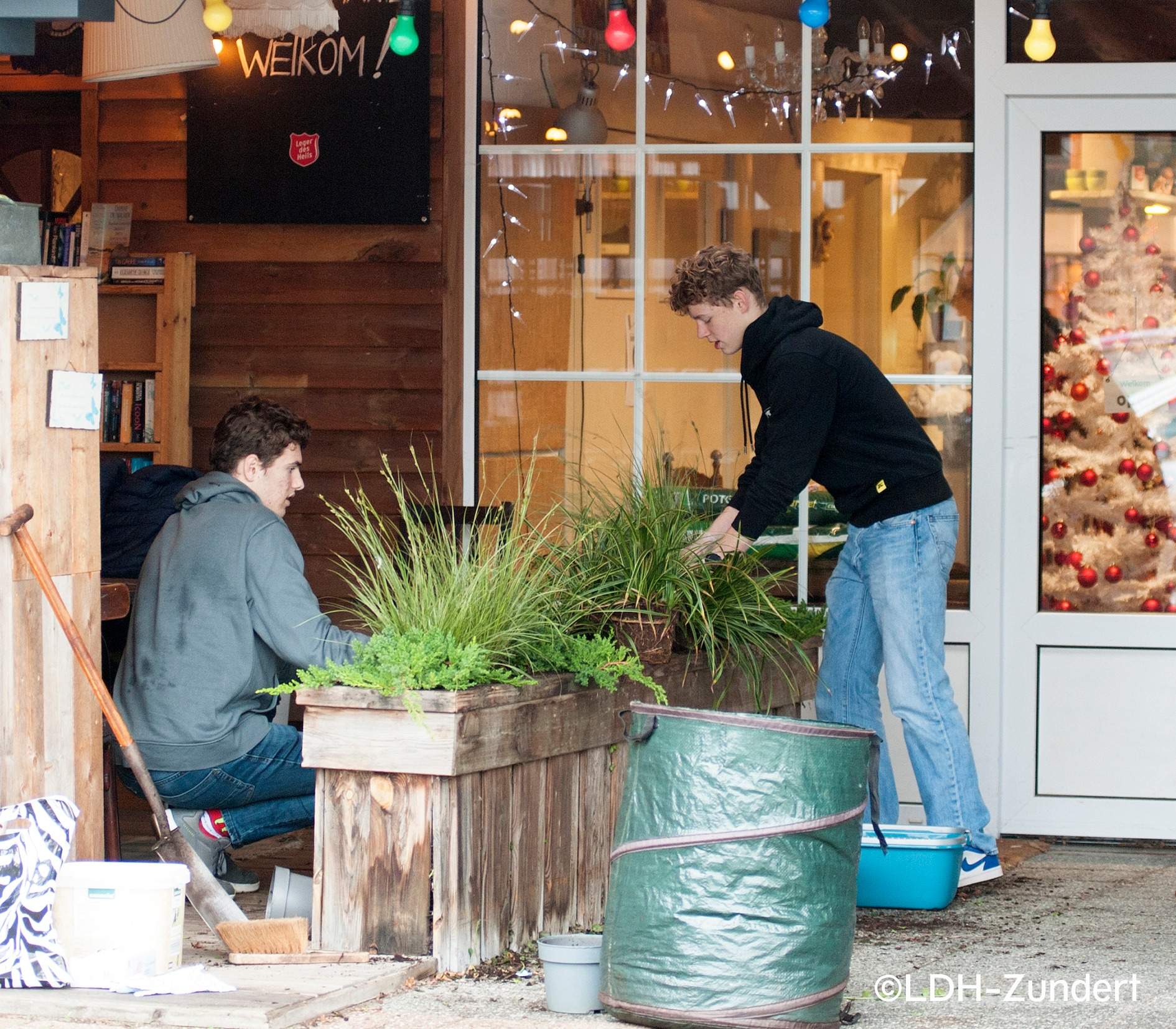 Samen met onze collega Josefien hadden zij het goede idee om het buiten bij onze winkel nog mooier te maken.