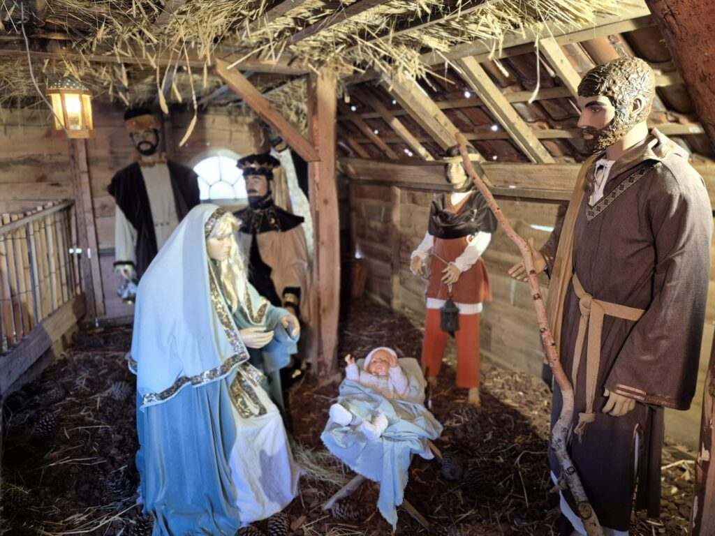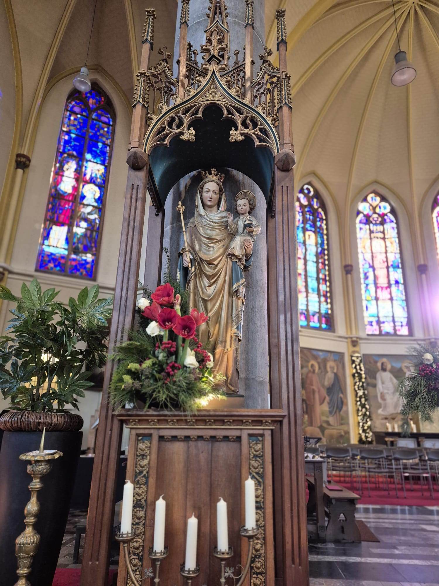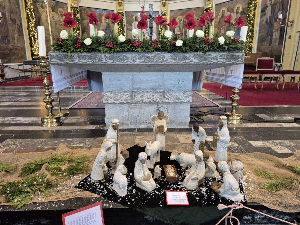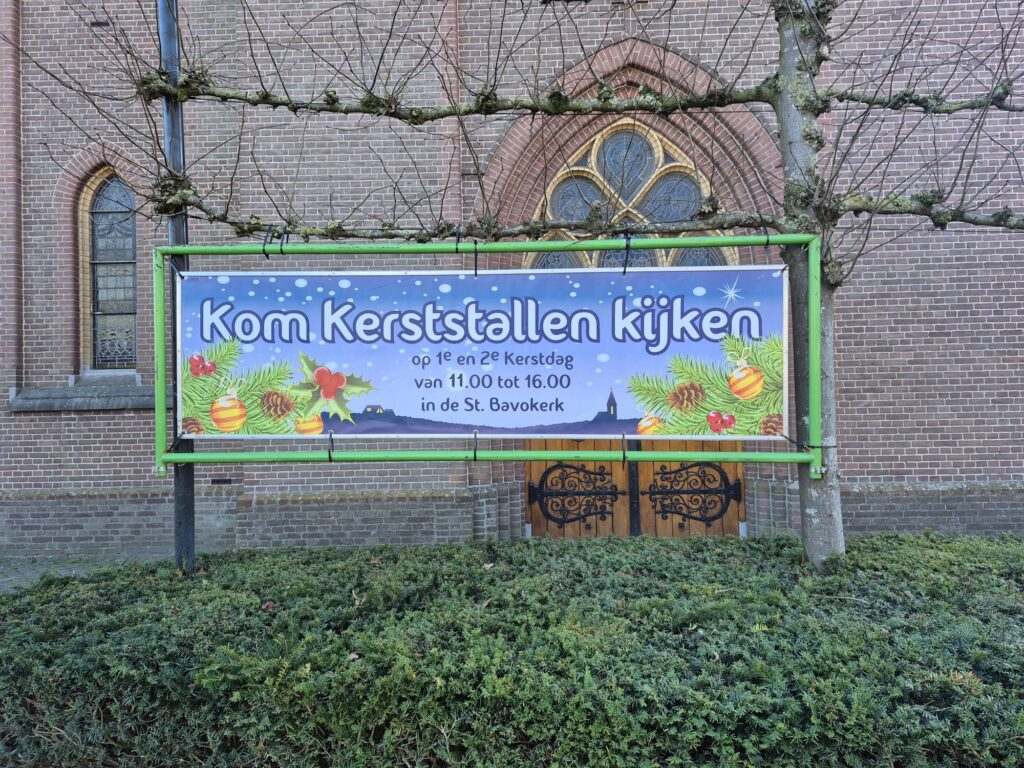 In een prachtig versierde kerk stonden weer vele grote en kleine stallen opgesteld. Mooi opgemaakt met witte doeken en groene coniferentakjes.