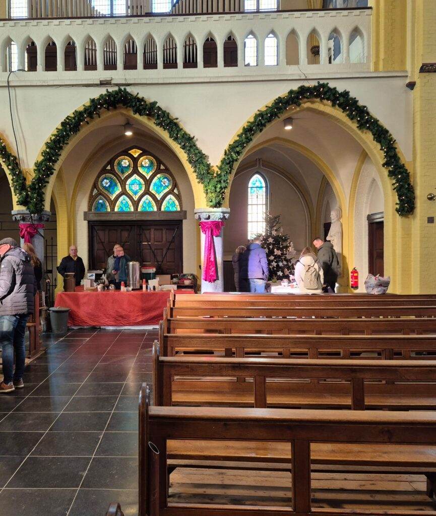 Traditie in Rijsbergen, net voordat iedereen aan gaat schuiven aan de rijk gevulde tafels eerst nog even een rondje door de kerk.