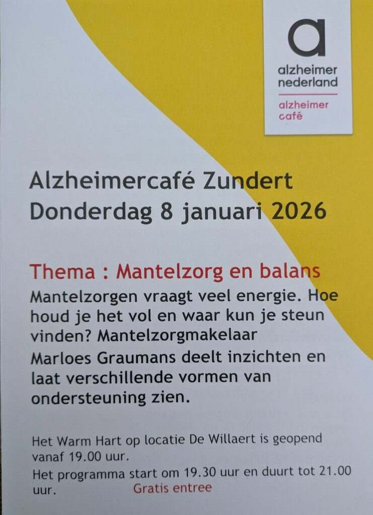 Allereerst wensen de vrijwilligers van Alzheimercafé Zundert u een mooi en liefdevol 2026.