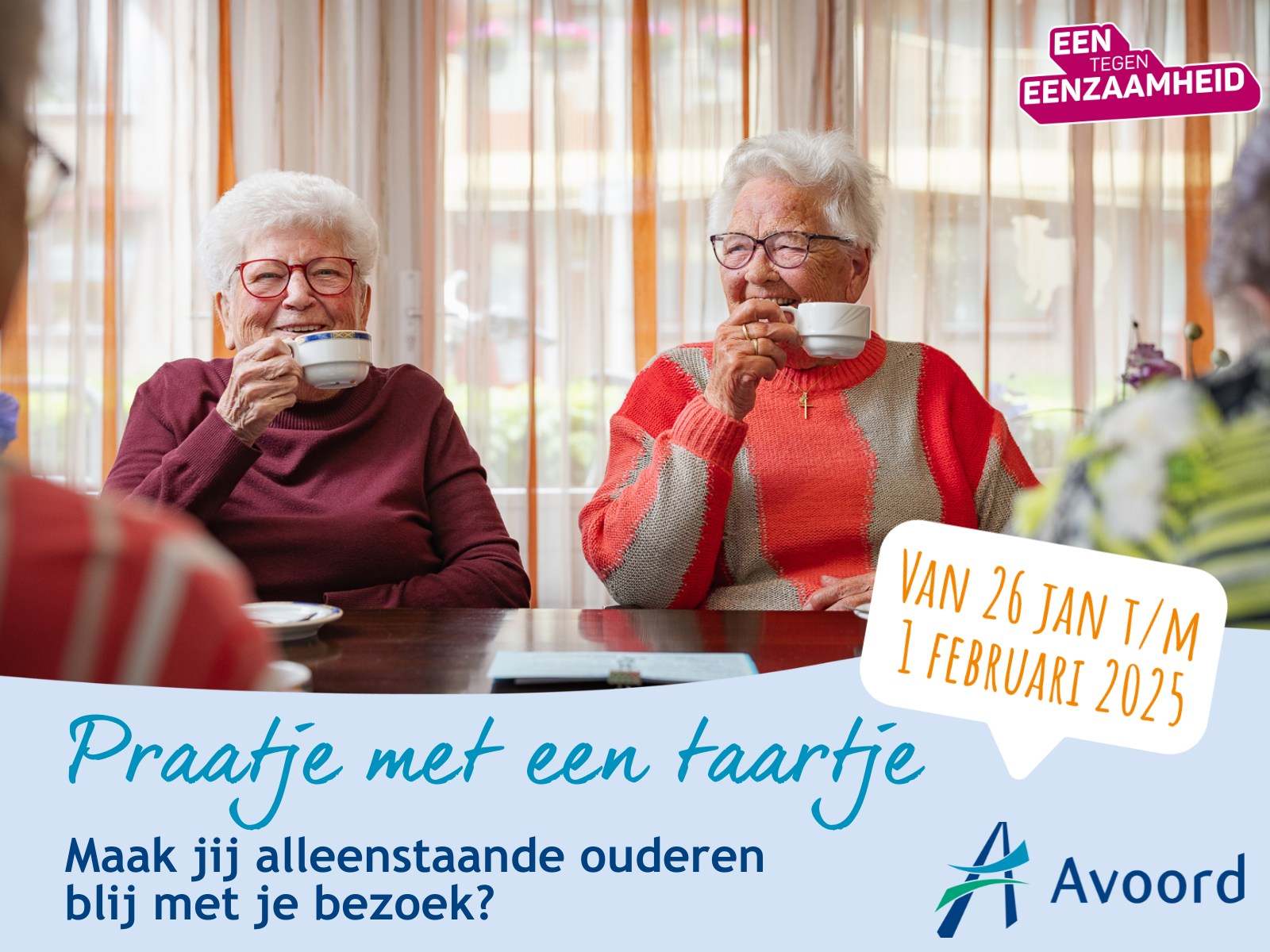 Ben je wel in voor een praatje? Meld je aan via https://www.avoord.nl/praatjetaartje.