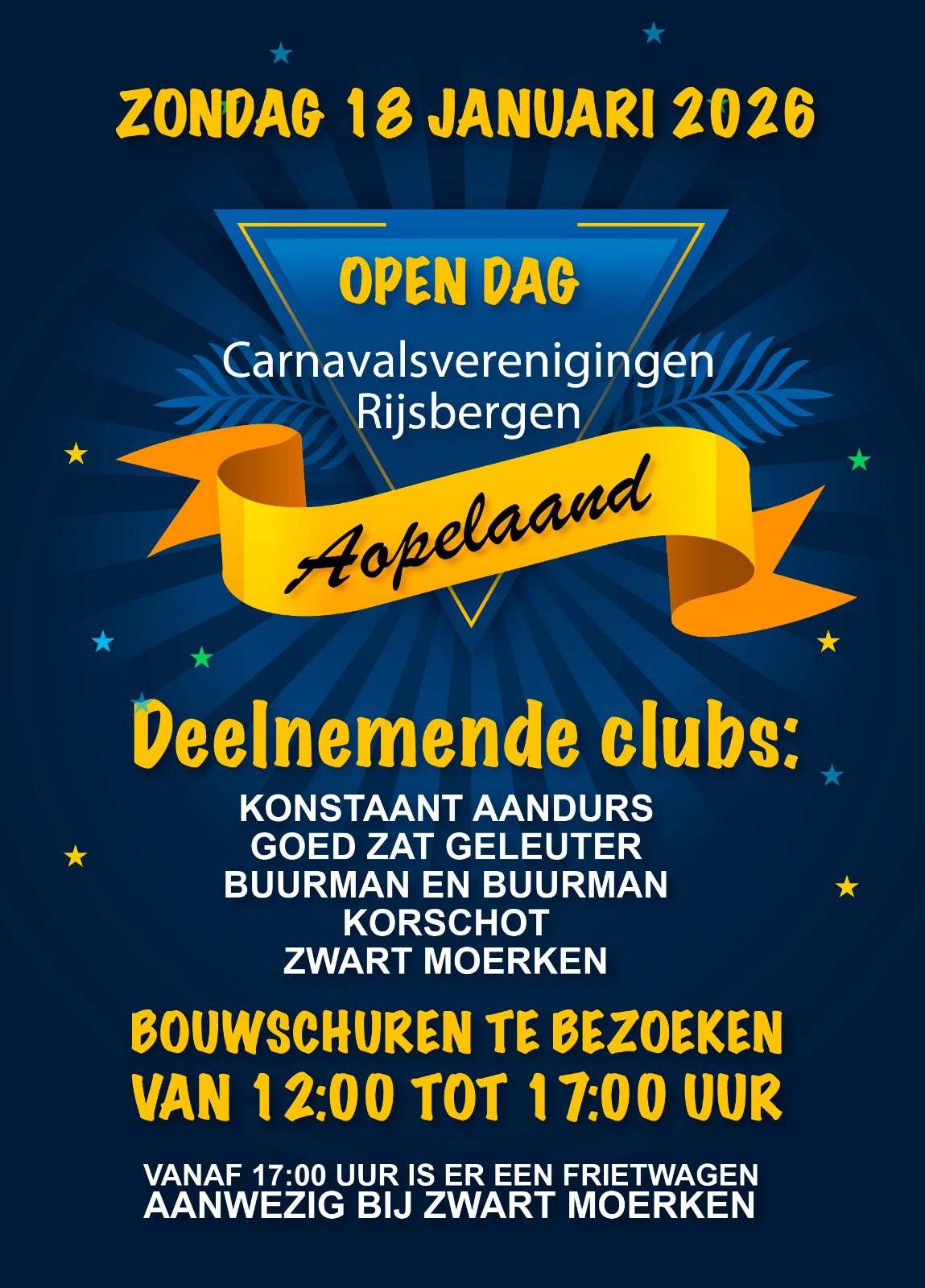 Zondag 18 januari is het weer zover! De Aopelaandse bouwclubs zetten hun deuren open voor iedereen die nieuwsgierig is naar wat er achter de schermen gebeurt