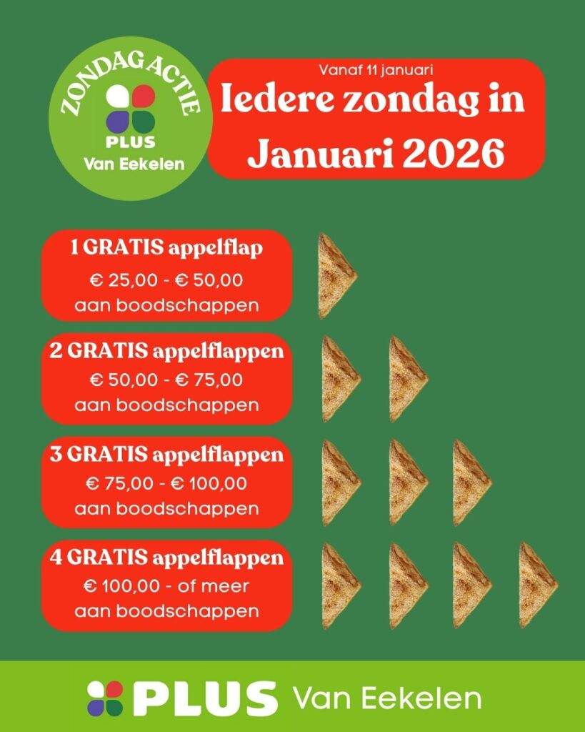 Kom op zondag je boodschappen doen en trakteer jezelf daarna op een lekkere appelflap.