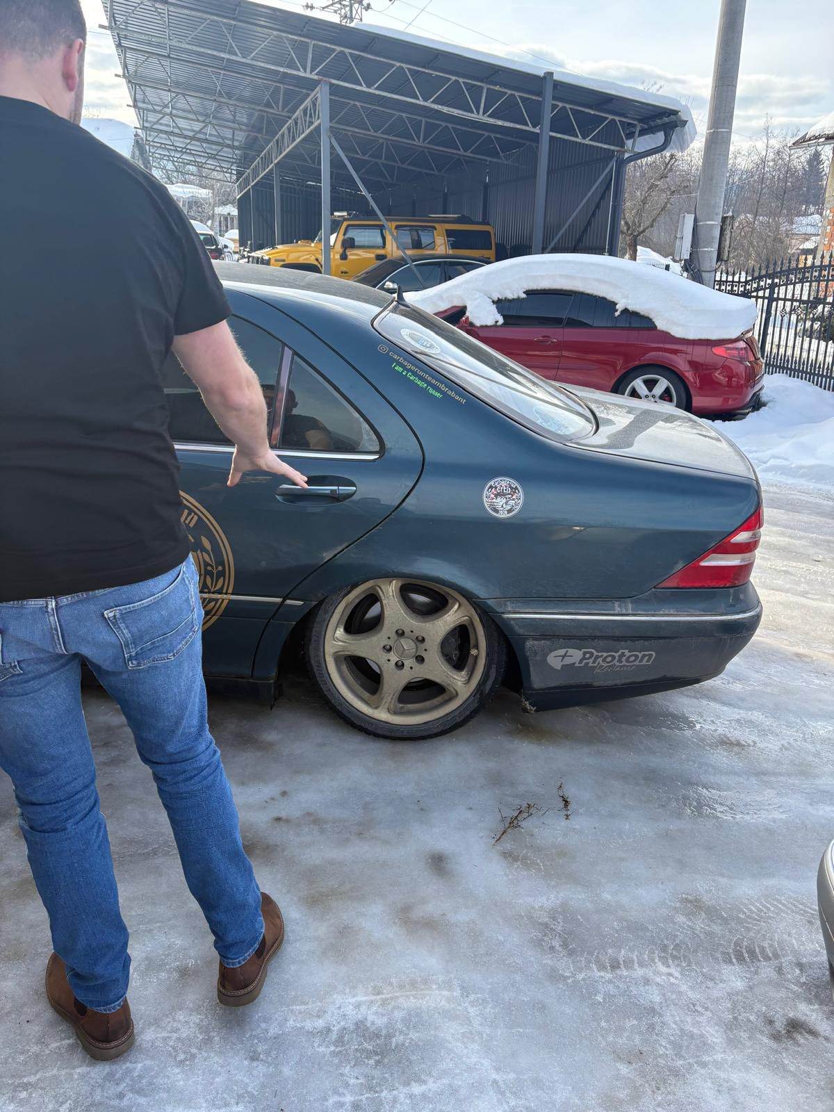 Zoals jullie al hadden kunnen lezen hadden we flinke luchtverings problemen met de groene benz, deze lag helemaal op zijn gat.