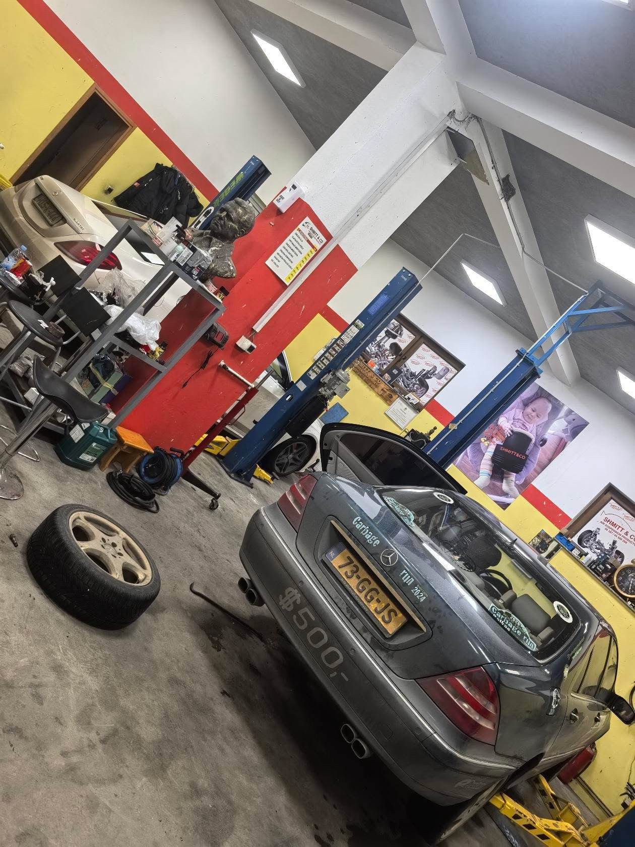 De grote jongens hebben we verplaats naar de grijze Mercedes zodat het wat gewicht scheelde, zo zijn we bij de lucht verings specialist gekomen.