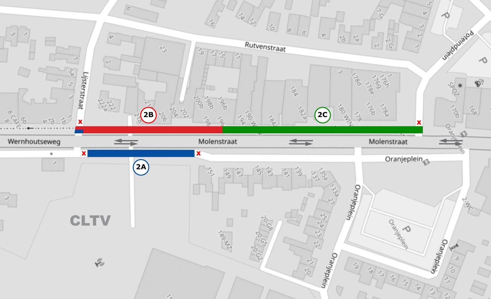 2 tot en met 17 februari: Vernieuwing voet- en fietspaden, vanaf de in-/uitrit Lijsterstraat tot de Molenstraat 196. In-/uitrit Lijsterstraat en voet-/fietspaden afgesloten;