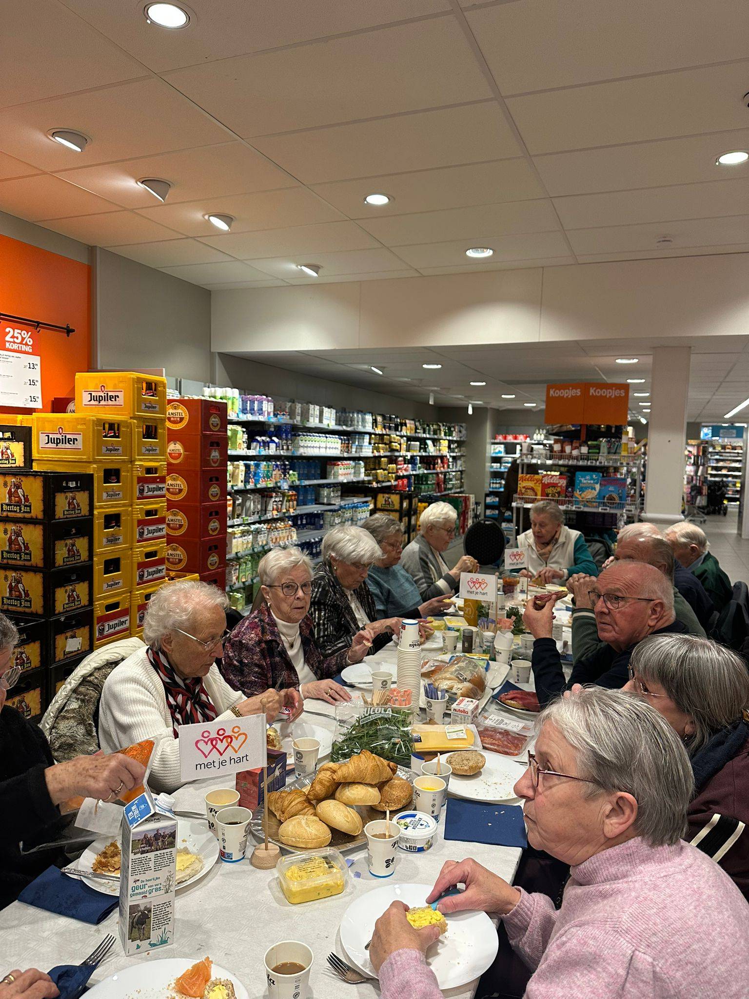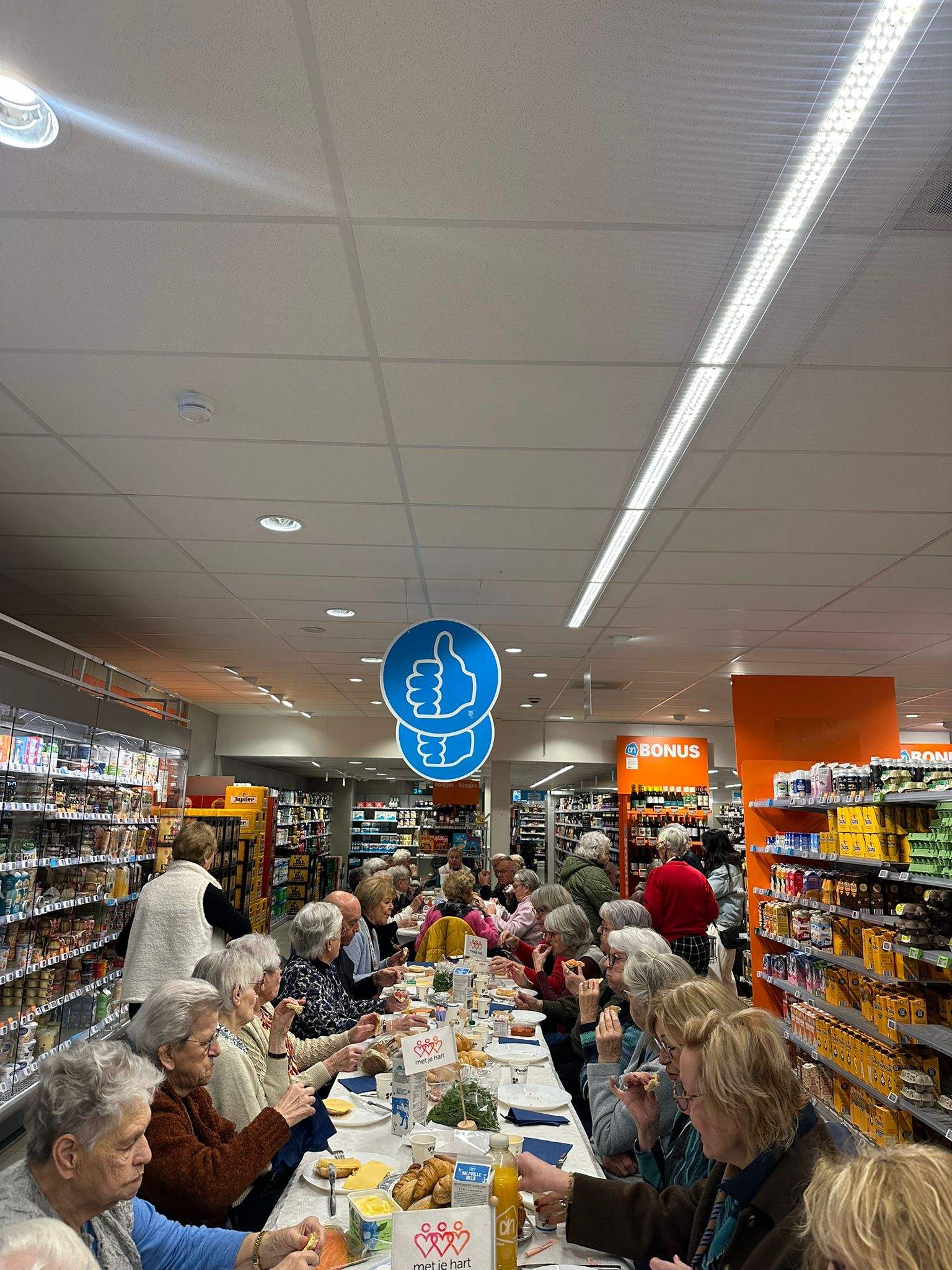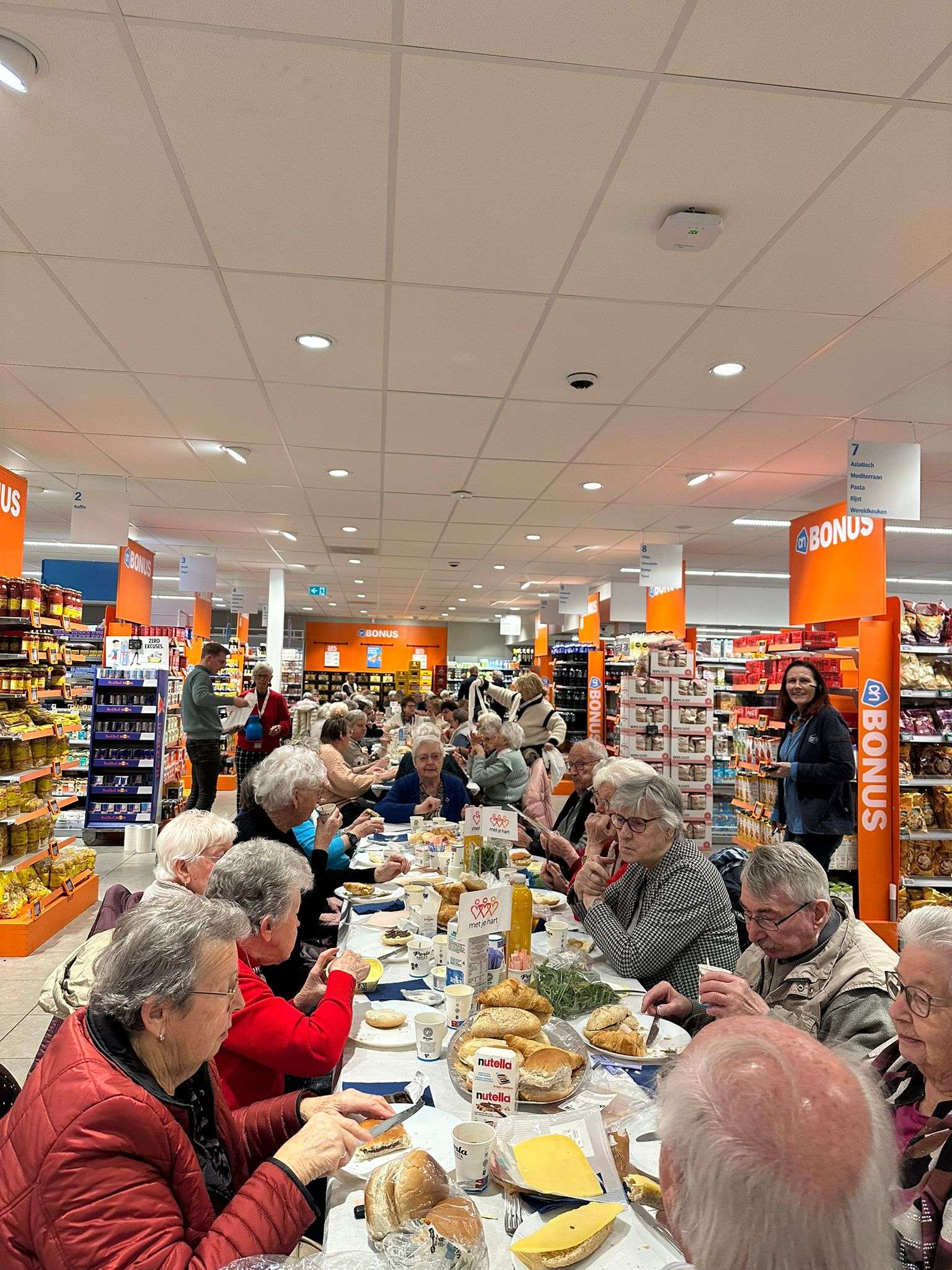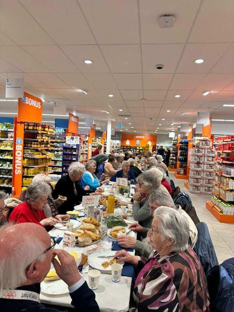 Wat geweldig dat we voor het tweede jaar op rij mochten lunchen midden in de Albert Heijn van Zundert. De ouderen die hier normaal alleen hun boodschapjes doen, konden nu gezamenlijk hier lunchen. Wat hebben we vanmiddag weer allemaal genoten!
