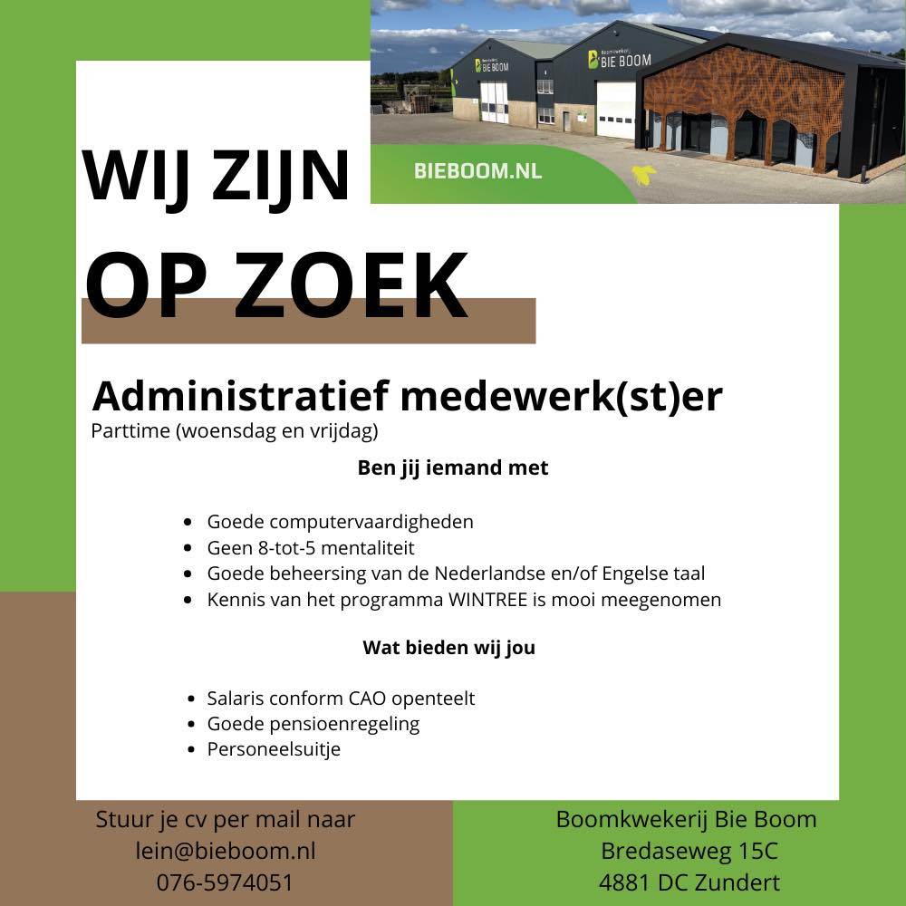 Ter uitbreiding van ons team zijn wij vanaf april/mei 2026 opzoek naar een administratief medewerk(st)er