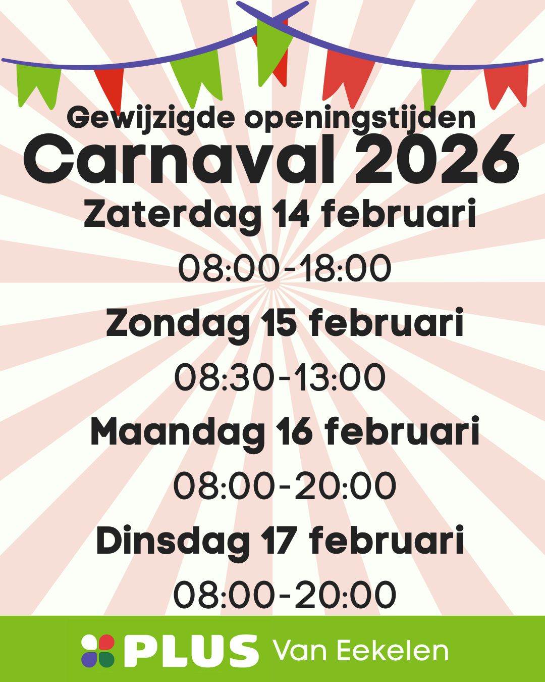 Om te kunnen genieten van de mooie optocht op zondagmiddag en een feestje te bouwen, hanteren wij aangepaste openingstijden.