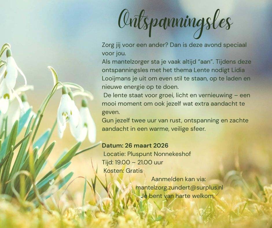 Ontspanning voor mantelzorgers op 26 maart