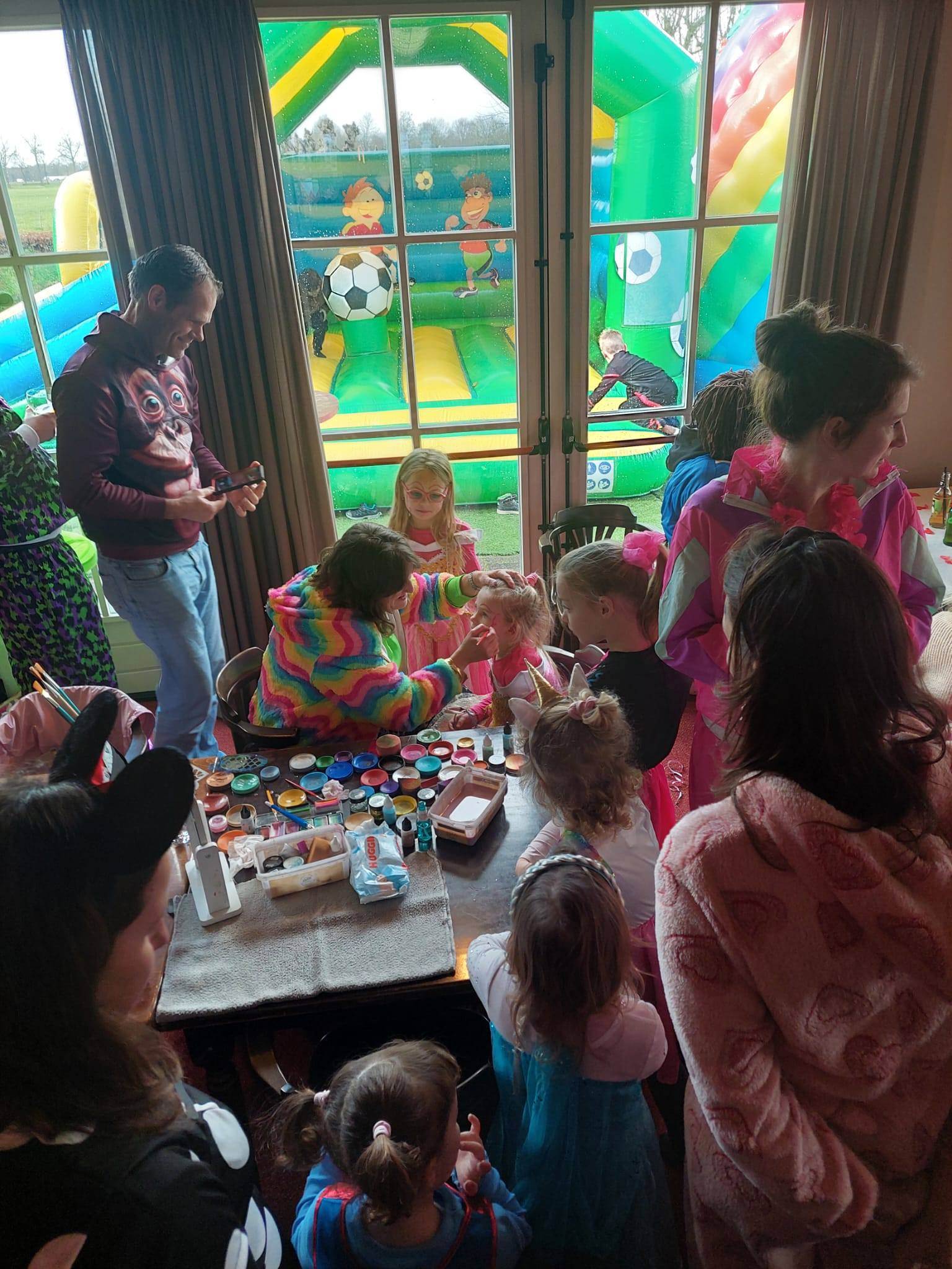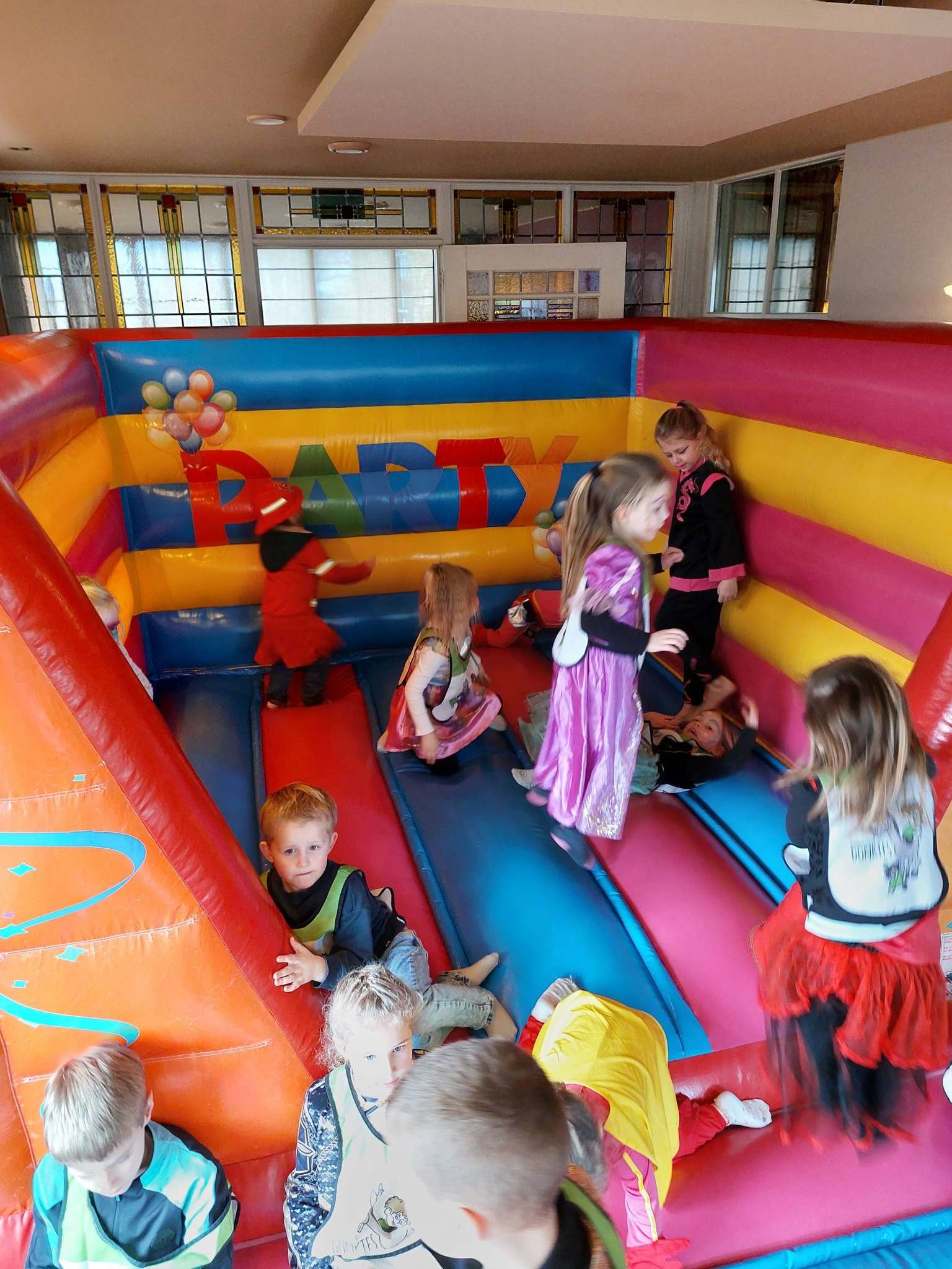 Zo was er drie SPRINGKUSSEN aanwezig. Maar ook een KNUTSELHOEK voor de creatieveling. Uiteraard kon een SCHMINK tafel niet ontbreken bij carnaval. Zelfs Joyce Vermue kwam langs om gezellig met de kinderen uit de omgeving een polonaise te lopen.