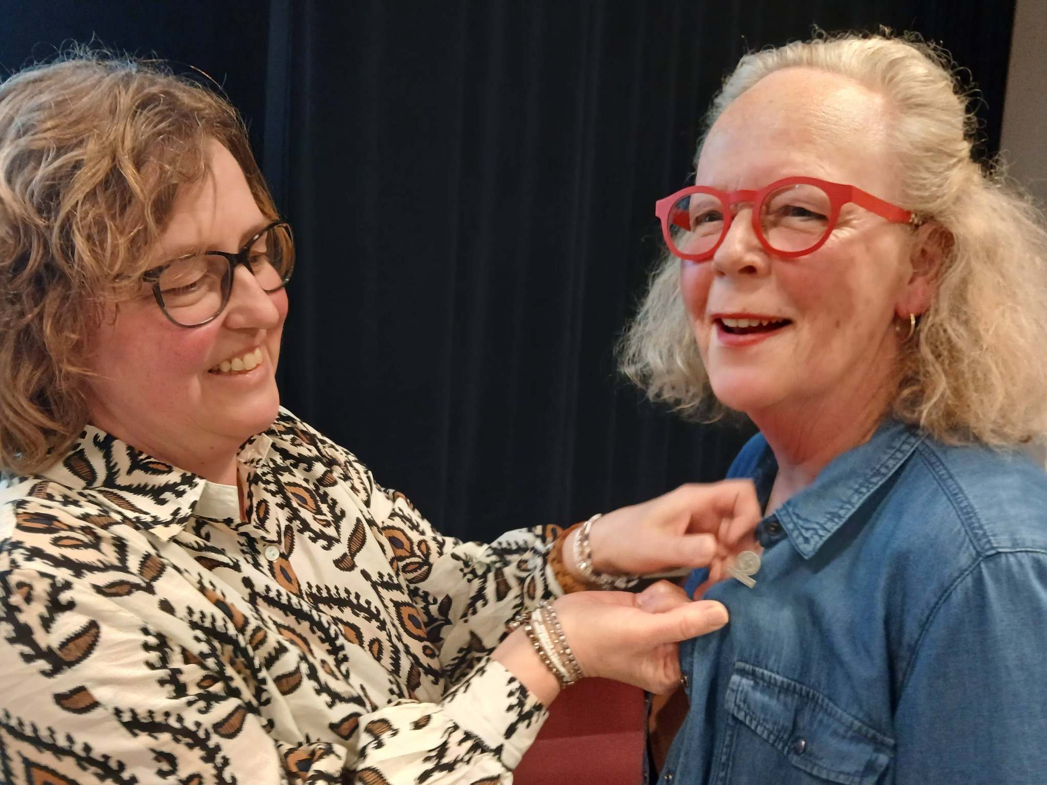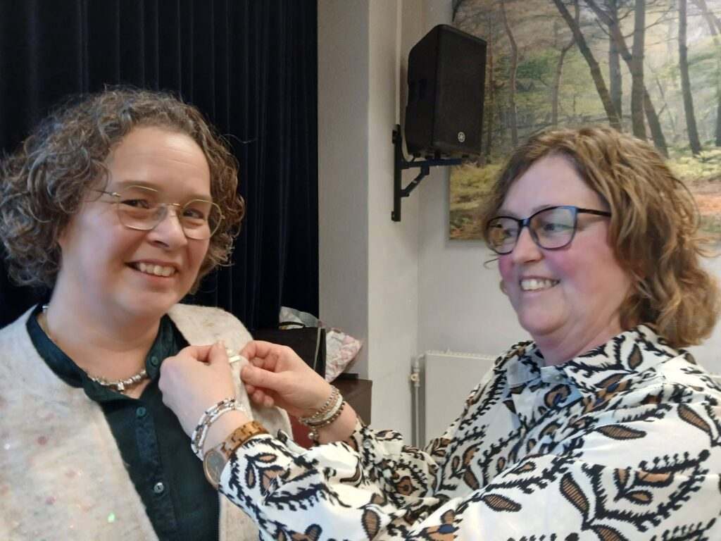Tijdens de jaarvergadering ontvingen Han Mensen-vd Ende en Lucelle Antonissen een zilveren speld en oorkonde, omdat ze zich al 25 jaar enthousiast inzetten voor de Unanime-familie.