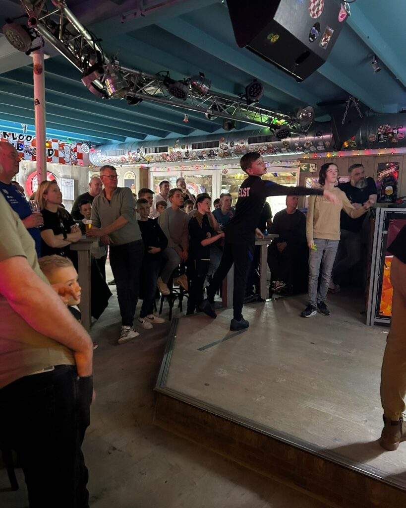 Met 24 kinderen in de leeftijd van 10 tot 15 jaar werd er eerst in poules gegooid en later een knock out fase. Het is mooi om het fanatisme te zien tijdens het gooien en later ook tijdens het kijken.