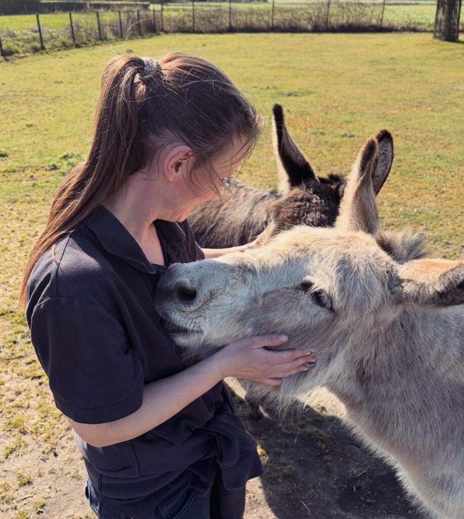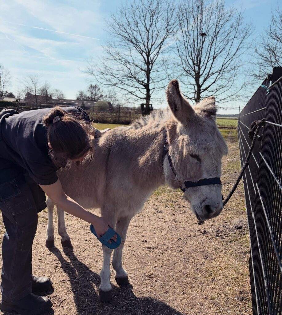 – Wist je dat we iedere maandag als activiteit de ezels borsten en knuffelen hebben Van 11:00 – 12:00 en van 13:30 – 14:30