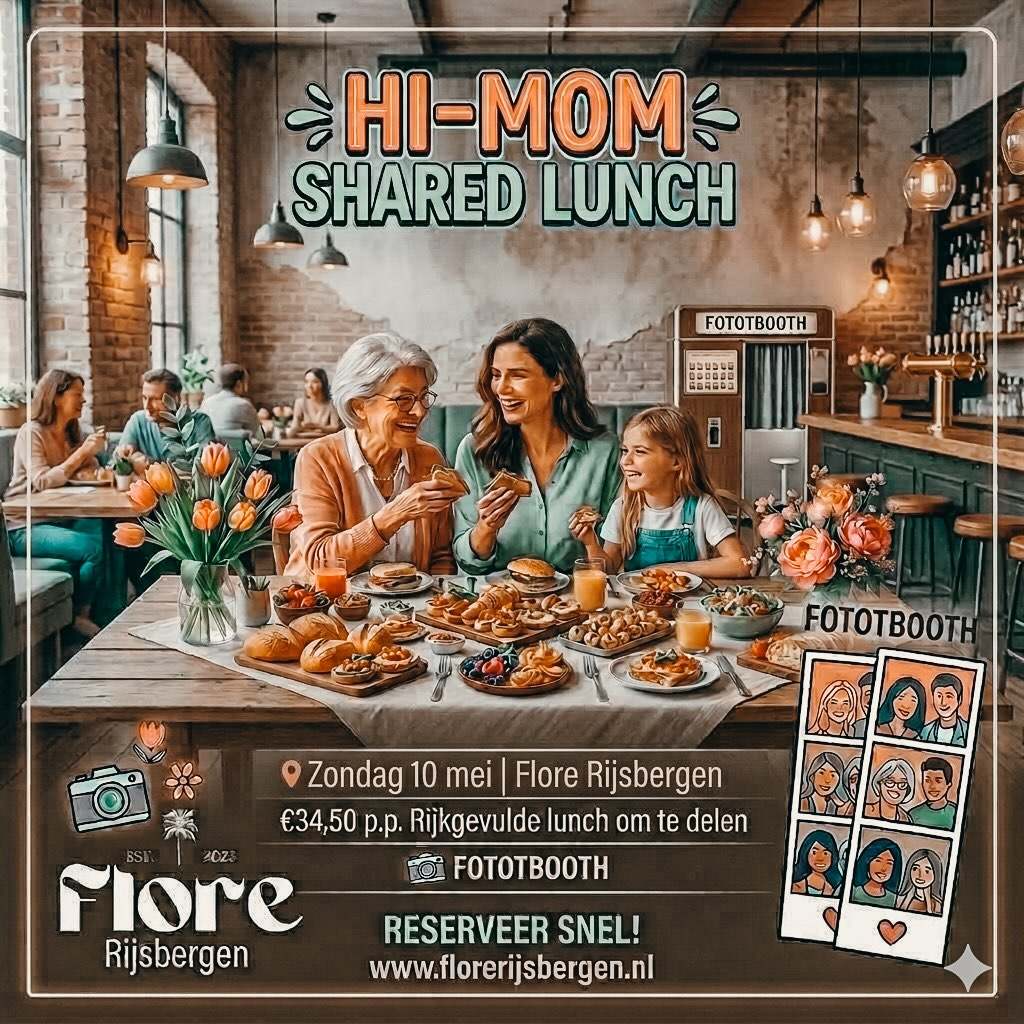 Vier Moederdag samen met ons tijdens een gezellige Hi-Mom shared lunch €34,50 p.p.
