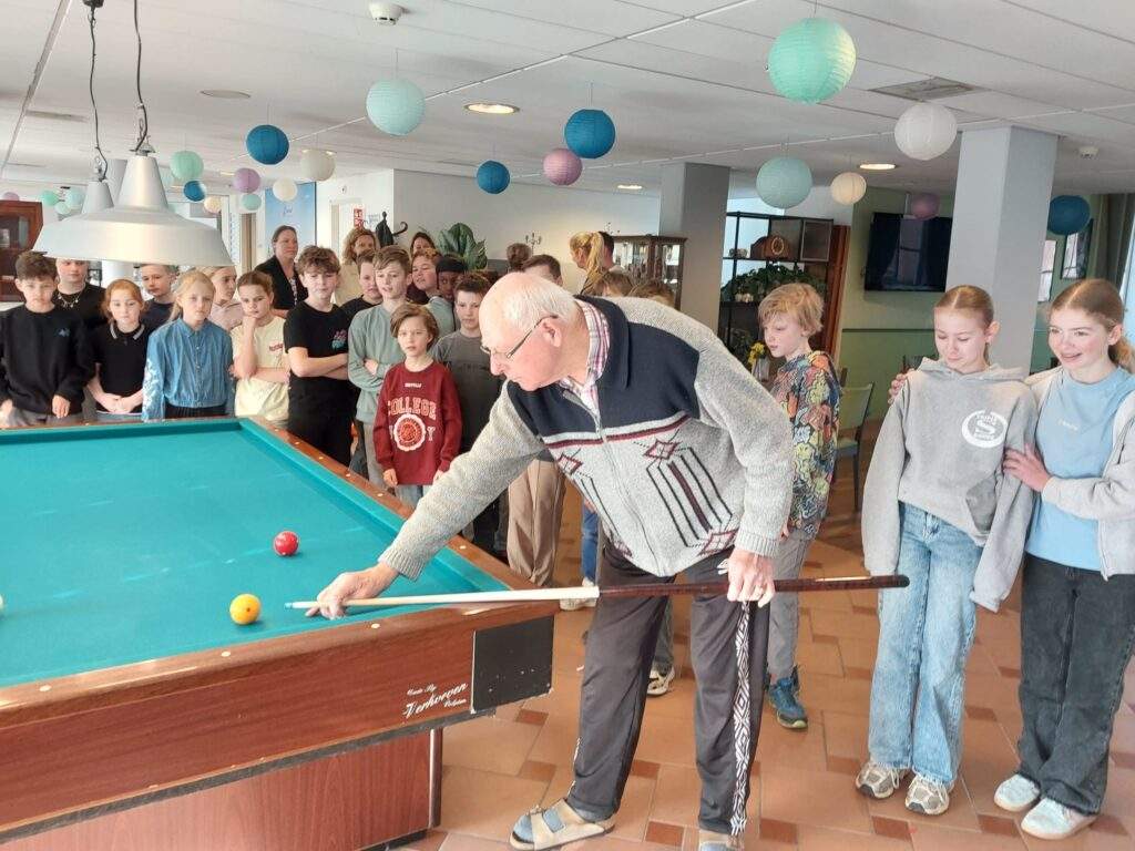 Na een korte uitleg van de biljartliefhebbers was het tijd om de handen uit de mouwen te steken. Daarna trokken de kinderen naar de woongroepen, waar hun versgebakken pannenkoeken met open armen werden ontvangen.