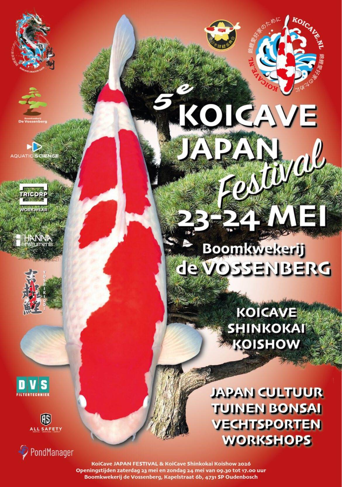 Zaterdag 23 en zondag 24 mei wordt onze kwekerij weer omgetoverd voor het 5e Koicave Japan Festival !!