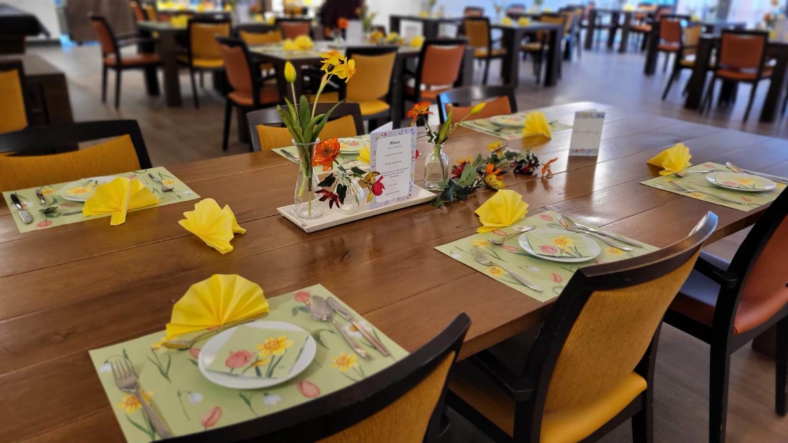 Dit keer stond de avond helemaal in het teken van de lente en Pasen. De gasten genoten van een heerlijk drie-gangen-diner met onder andere aspergesoep, een pasteitje met champignonragout en een heerlijk lente ijsje.