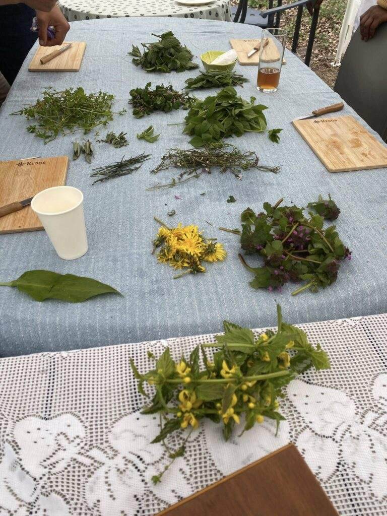 Vervolgens gingen we op wildplukwandeling door het voedselbos samen met Roos. We hebben allemaal wat verschillende plantjes en blaadjes geplukt en daar gingen we samen mee aan de slag. We hebben een heerlijke borrelplank gemaakt .