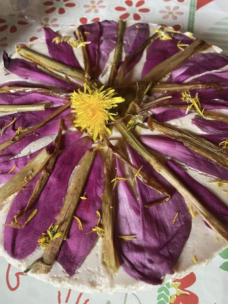 We werden daarna door Roos Konings verrast met een prachtige magnolia kwarktaart met japanse duizendknoop. Ook had ze een siroop gemaakt met japanse duizendknoop en magnolia.